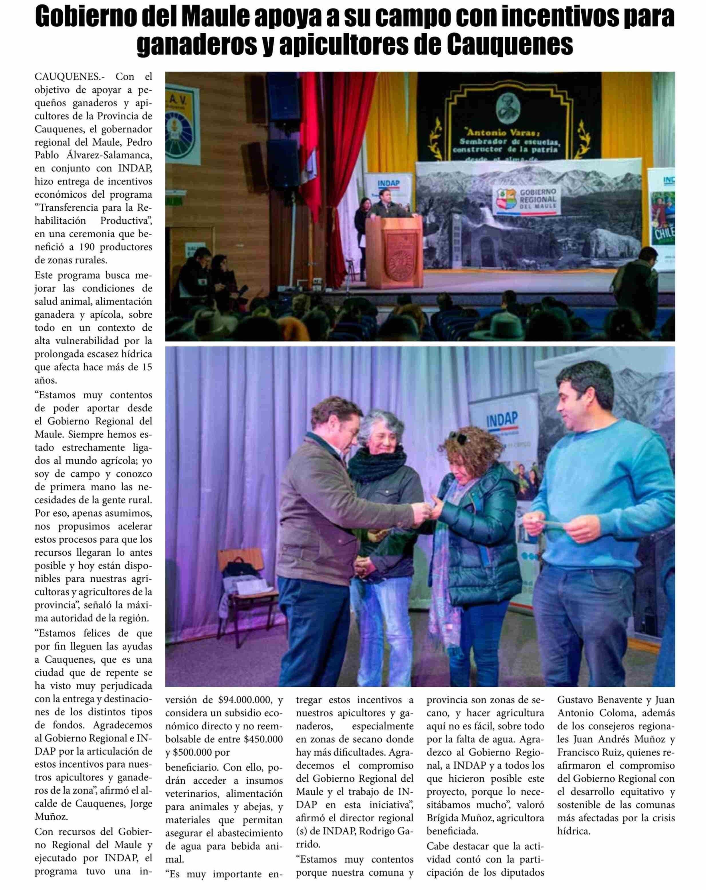 Gobierno del Maule apoya a su campo con incentivos para ganaderos y apicultores de Cauquenes