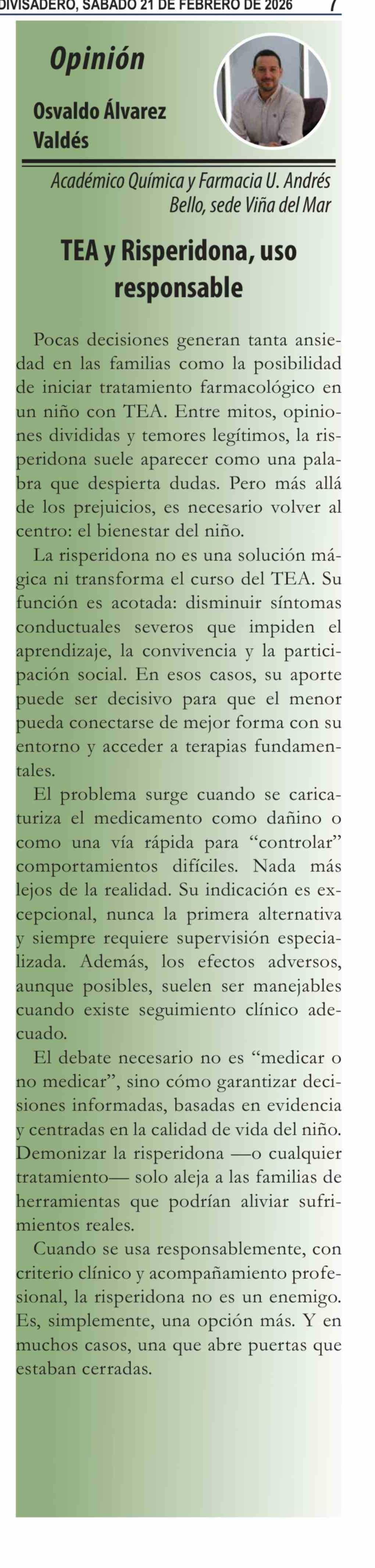Columnas de Opinión: TEA y Risperidona, uso responsable