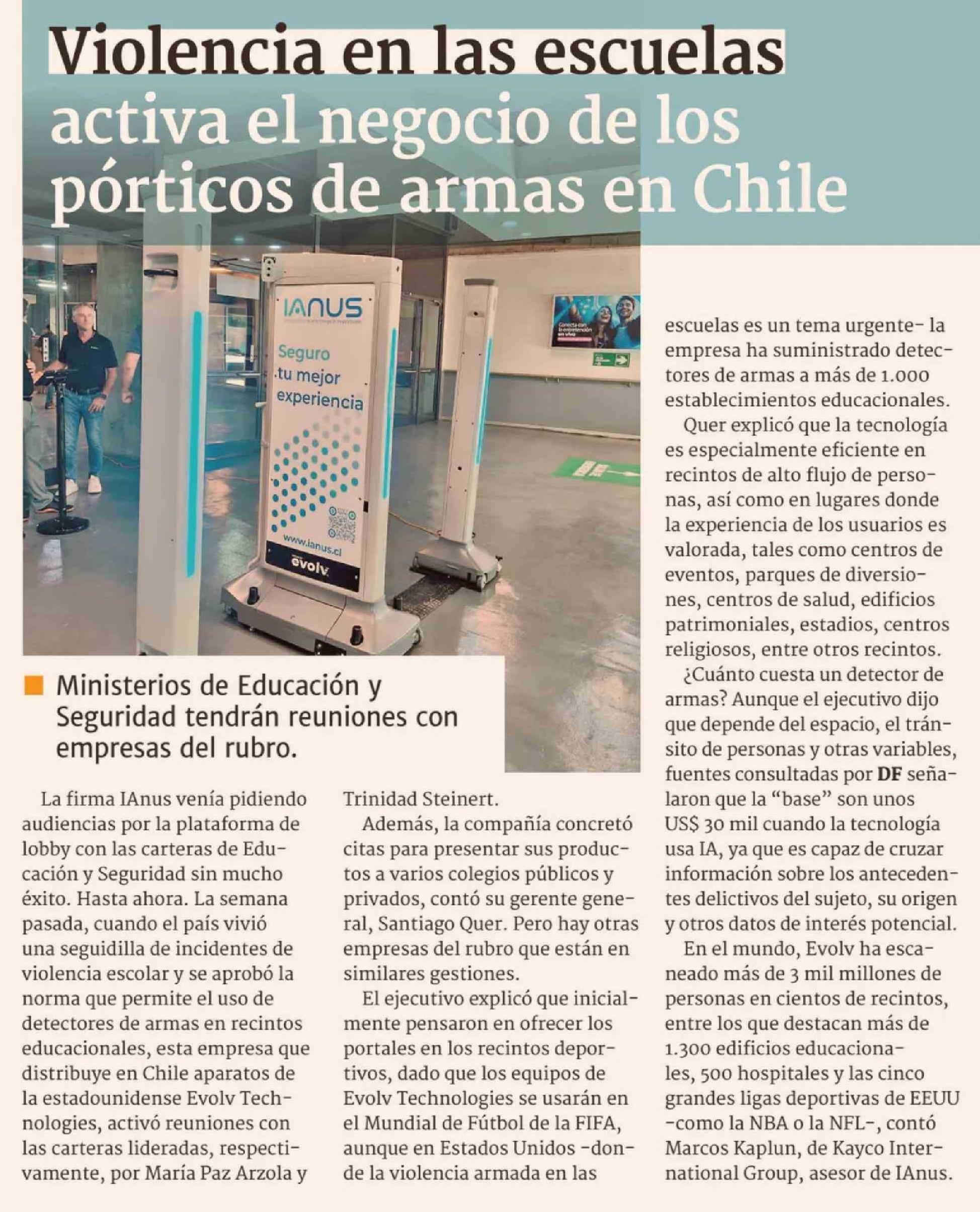 Título: Violencia en las escuelas activa el negocio de los pórticos de armas en Chile