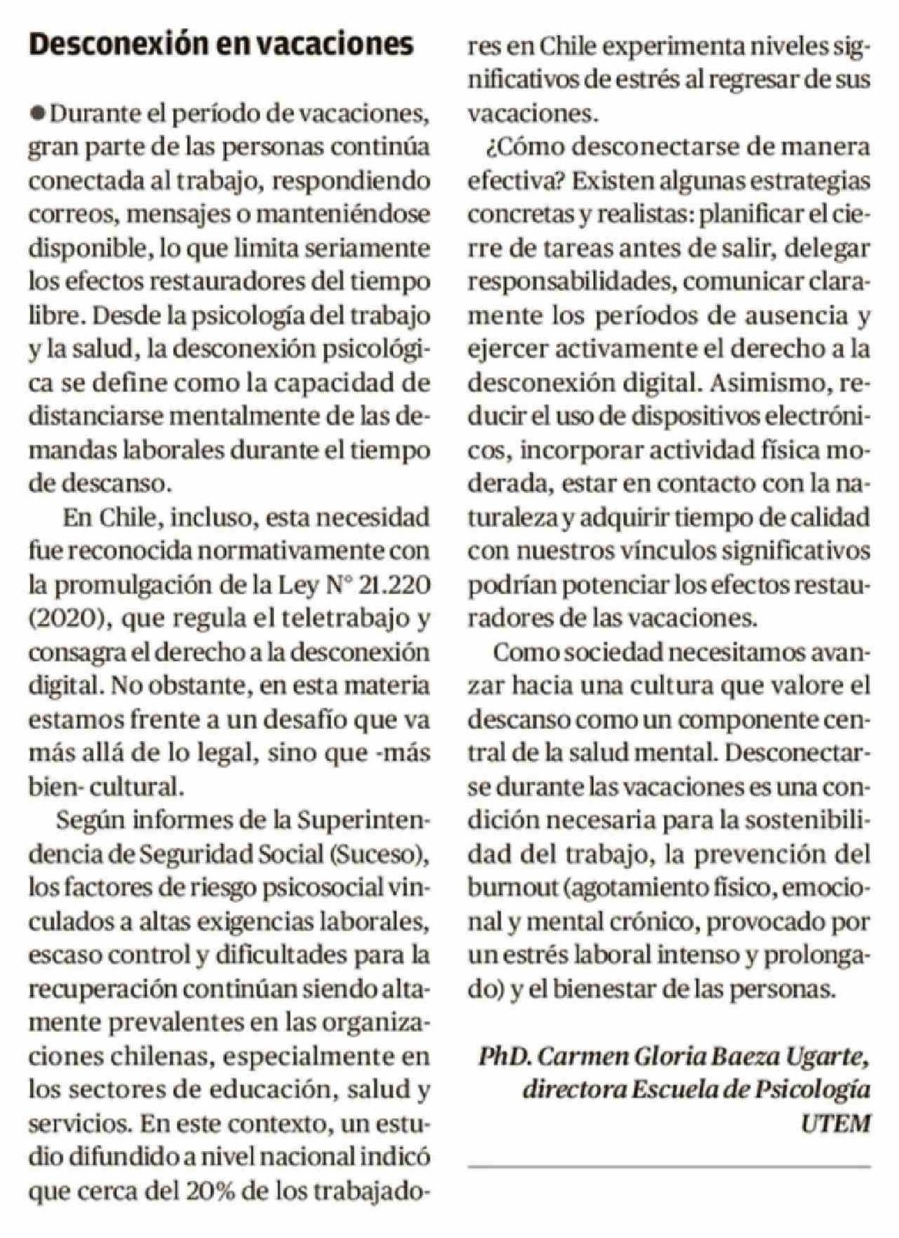 Cartas: Desconexión en vacaciones