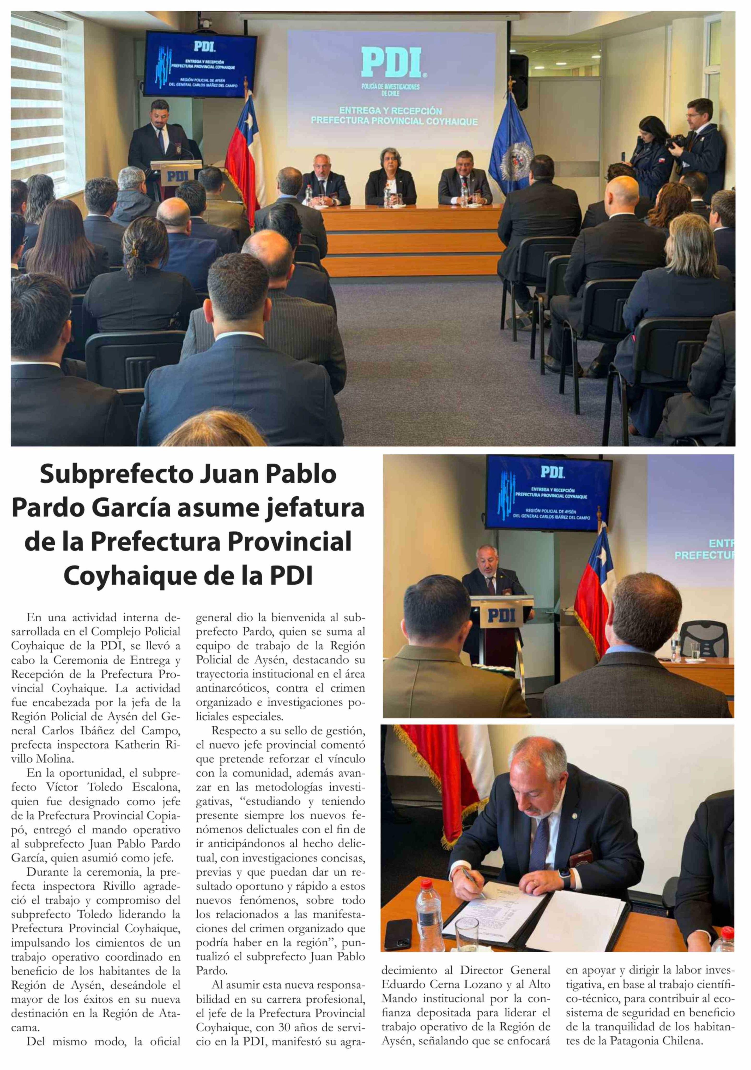 Subprefecto Juan Pablo Pardo García asume jefatura de la Prefectura Provincial Coyhaique de la PDI