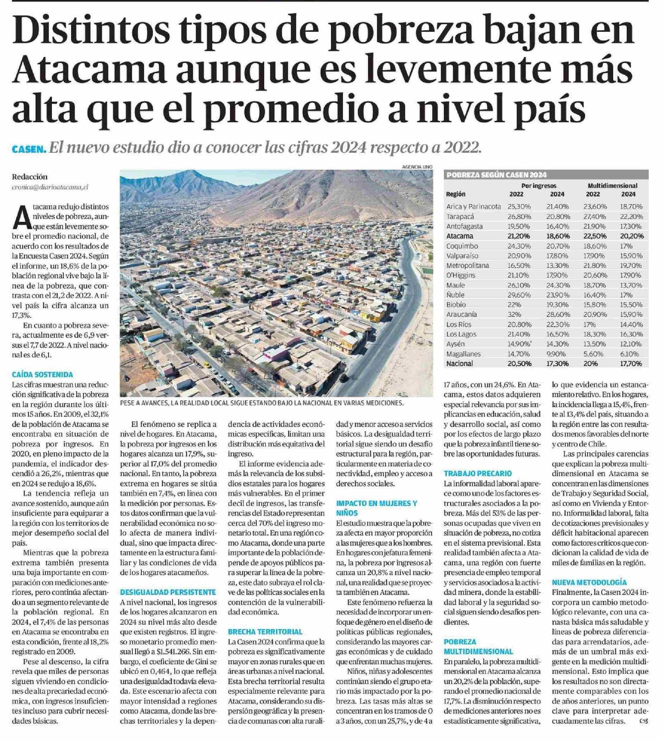 Distintos tipos de pobreza bajan en Atacama aunque es levemente más alta que el promedio a nivel país