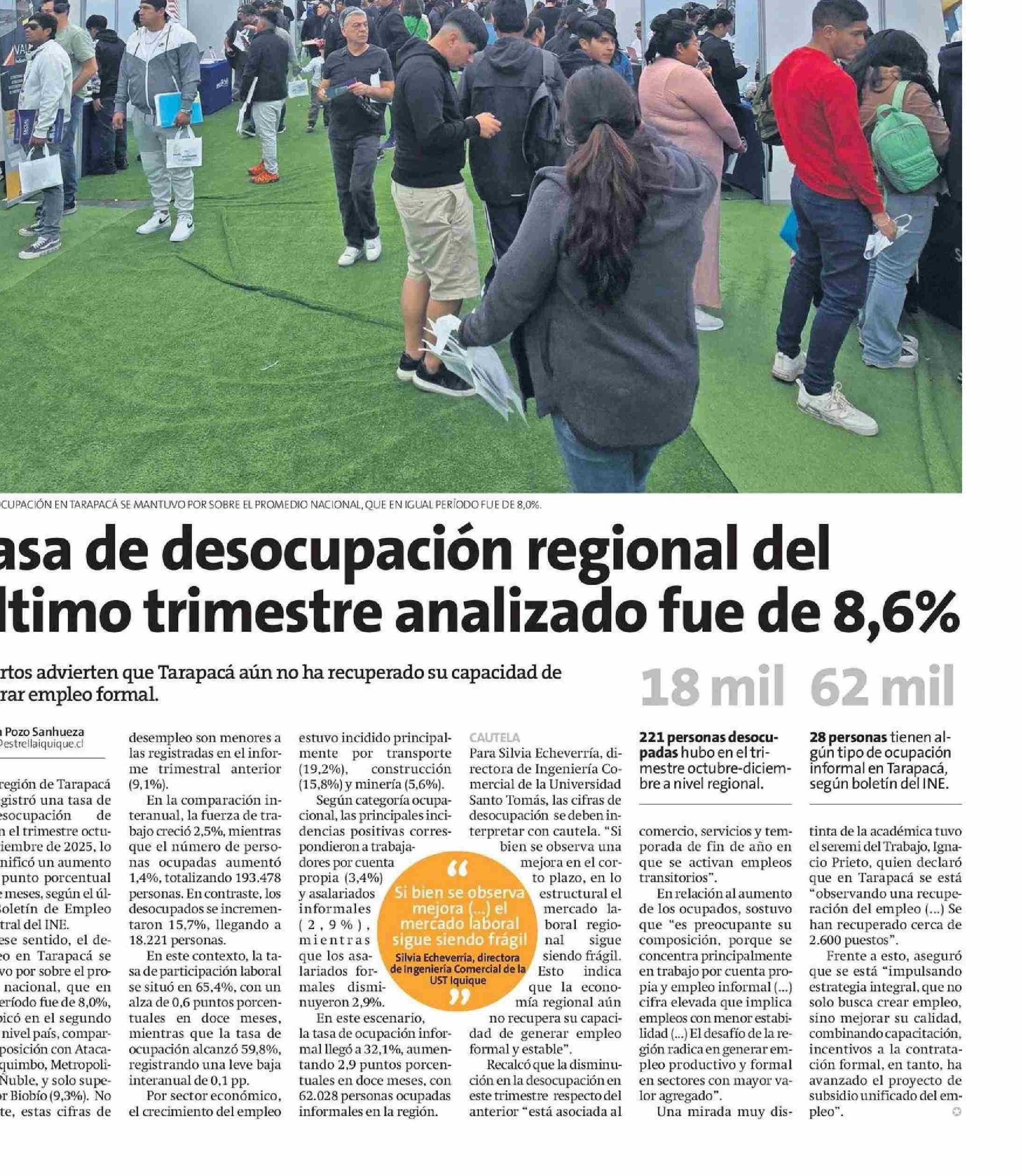 Tasa de desocupación regional del último trimestre analizado fue de 8,6%