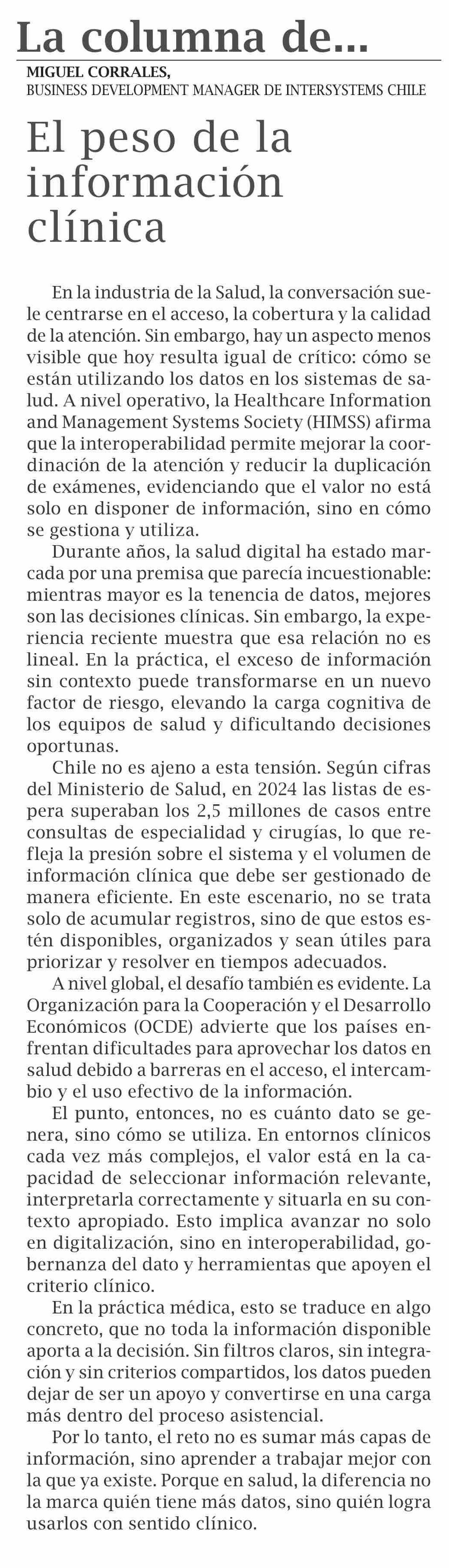 COLUMNAS DE OPINIÓN: El peso de la información clínica