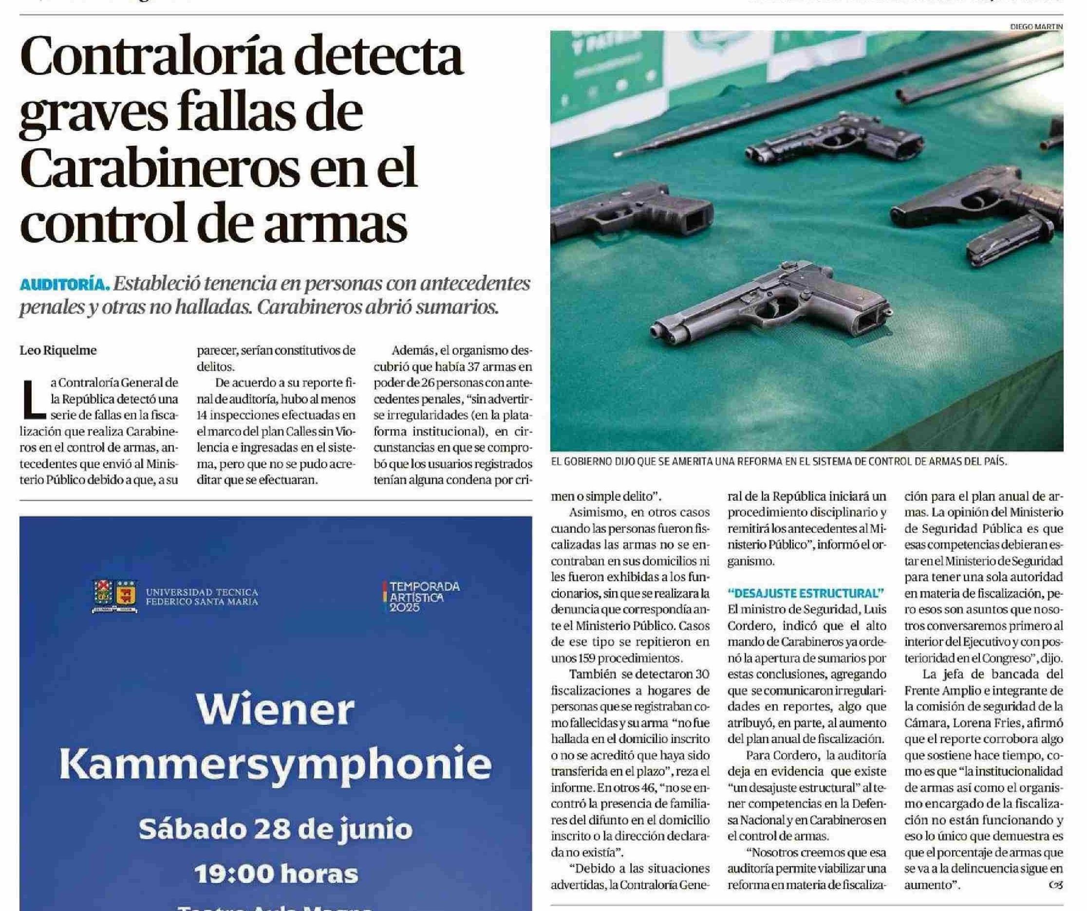 Contraloría detecta graves fallas de Carabineros en el control de armas