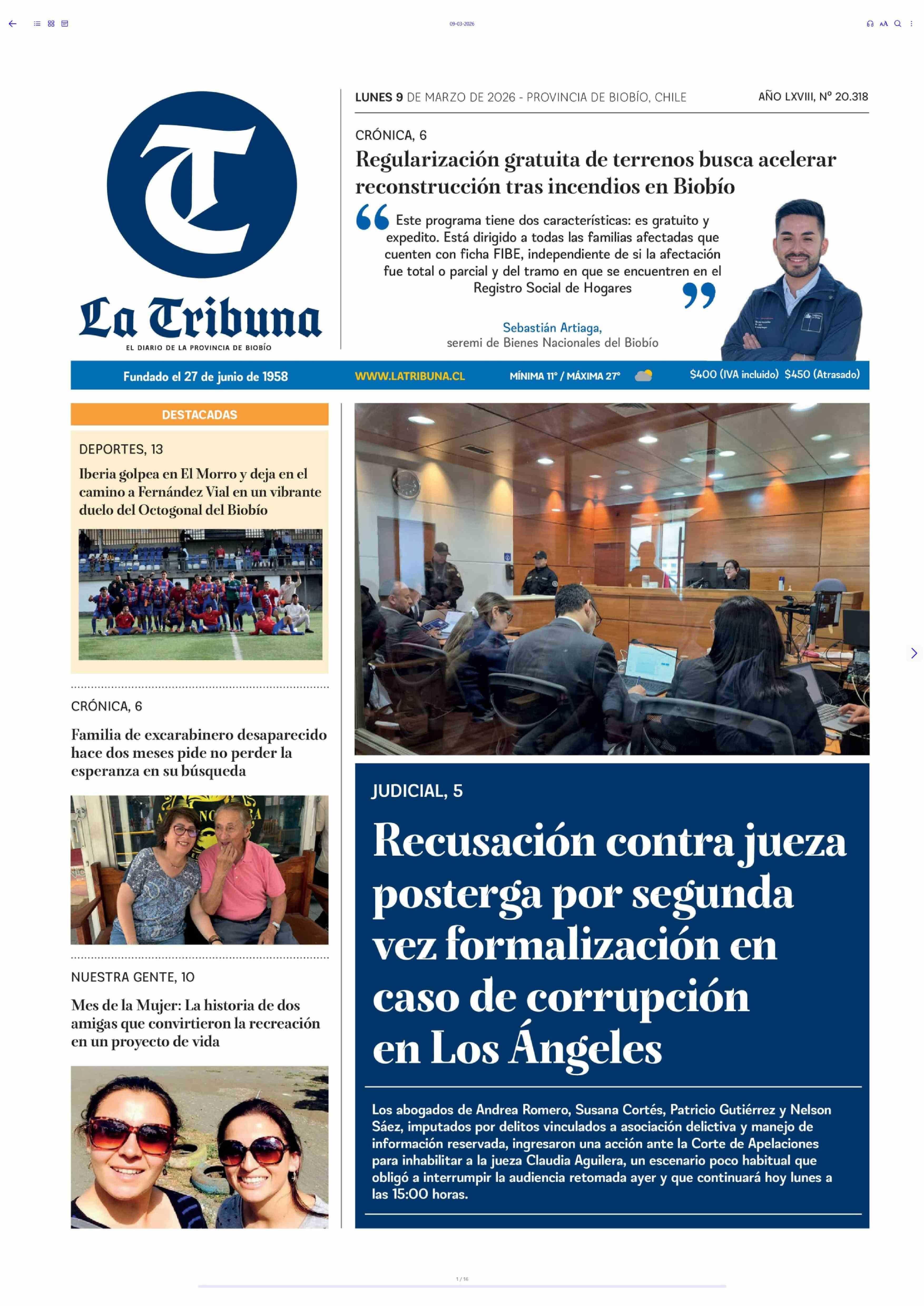 PORTADA LA TRIBUNA CHILE