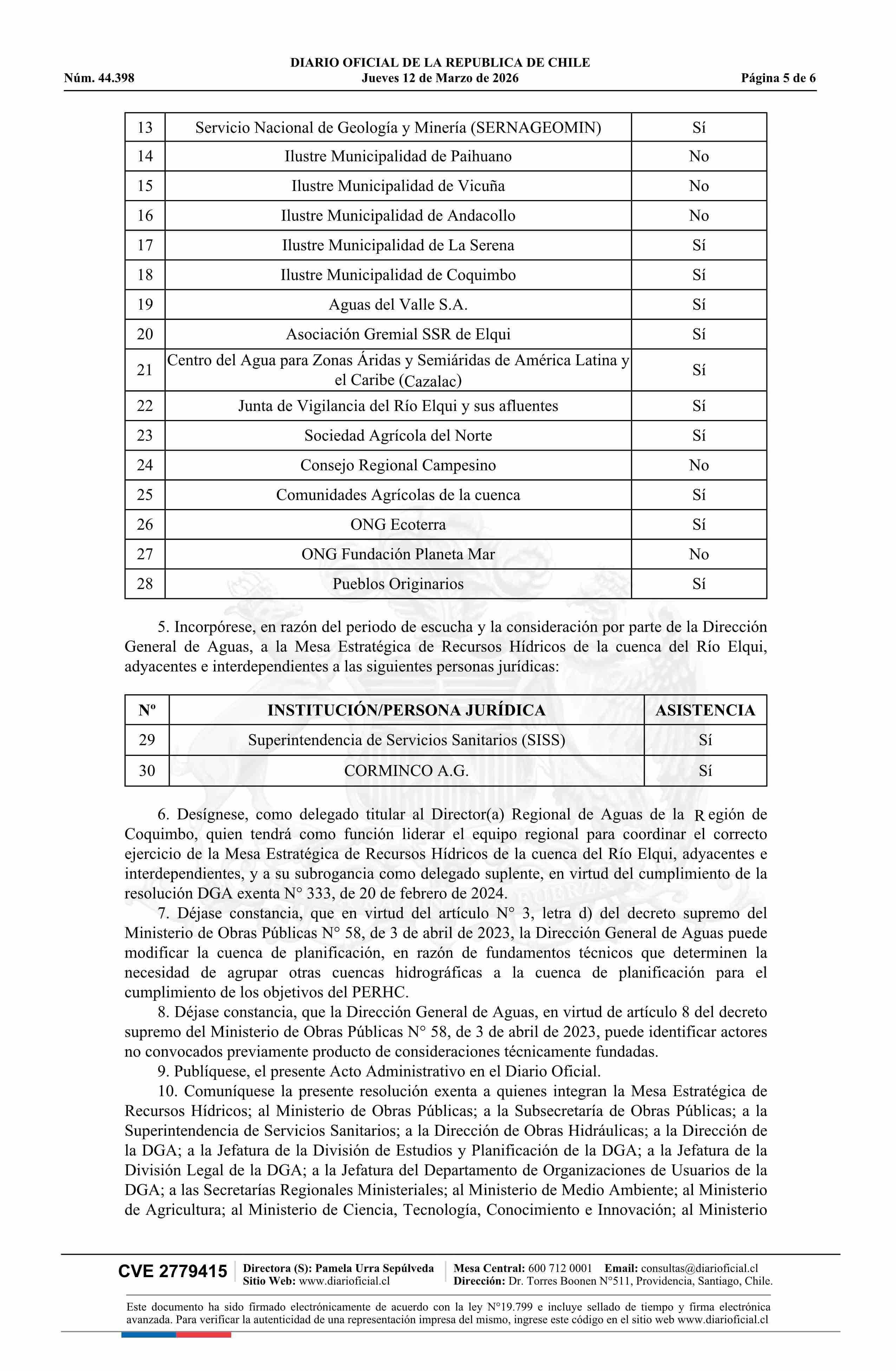 Título: Resolución exenta número 483, de 2026.- Delimita y denomina cuenca de planificación para el desarrollo del Plan Estratégico de Recursos Hídricos en la cuenca del Río Elqui, adyacentes e interdependientes; constituye Mesa Estratégica de Recursos Hídricos; identifica convocados y asistencia a primera