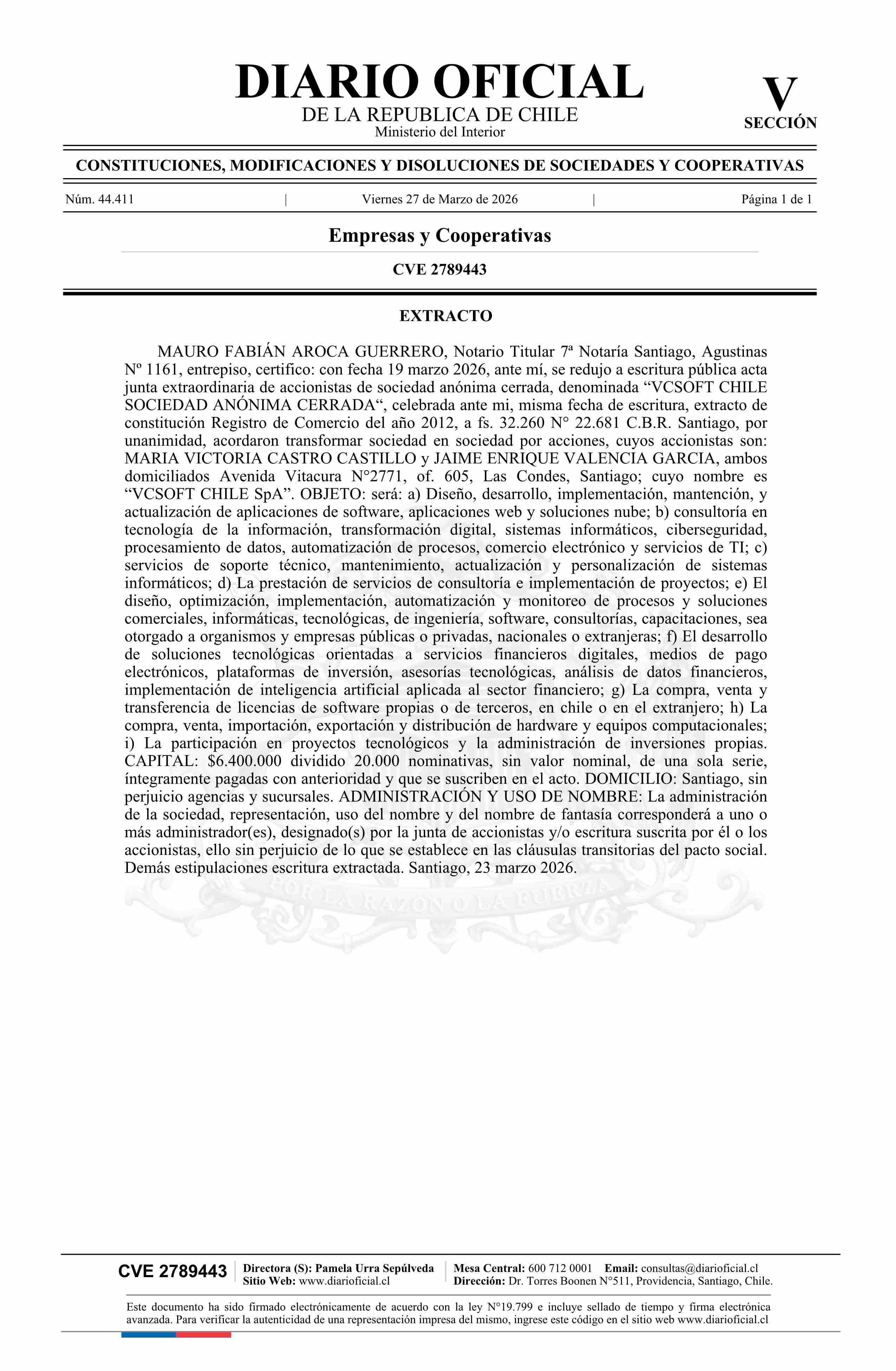 VCSOFT CHILE SOCIEDAD ANÓNIMA CERRADA 76.218.321-8*