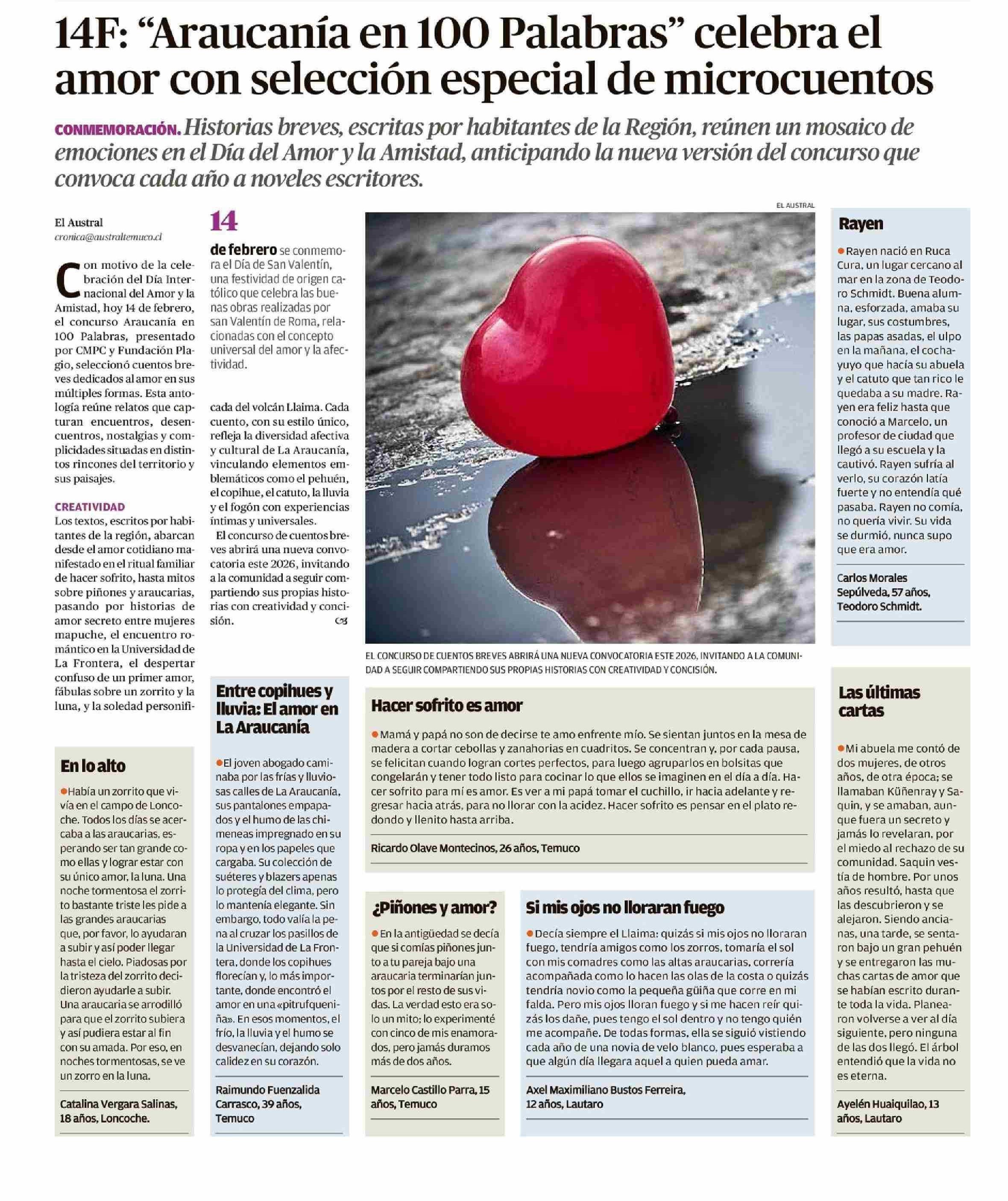 14F: "Araucanía en 100 Palabras" celebra el amor con selección especial de microcuentos