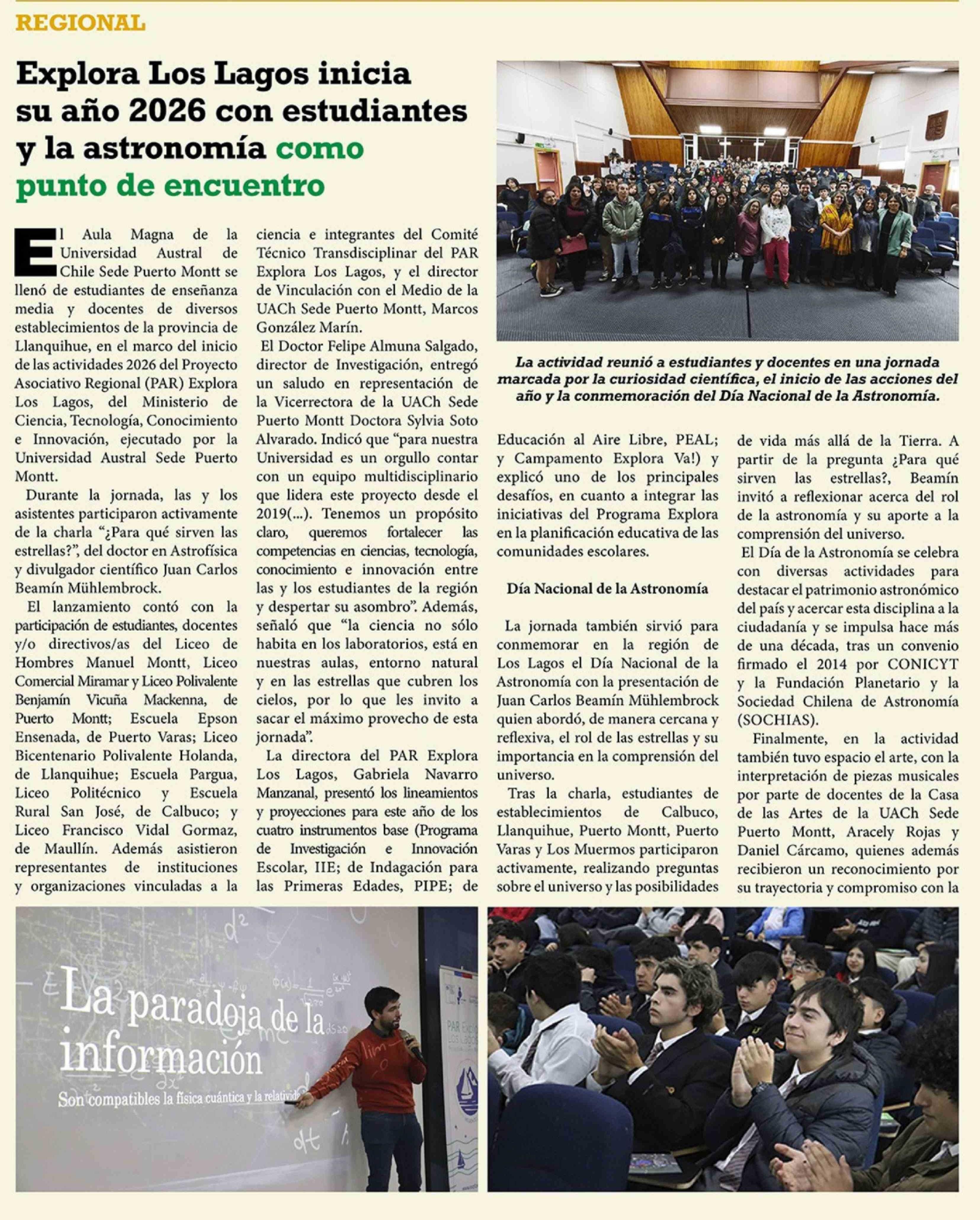 Título: Explora Los Lagos inicia su año 2026 con estudiantes y la astronomía como punto de encuentro