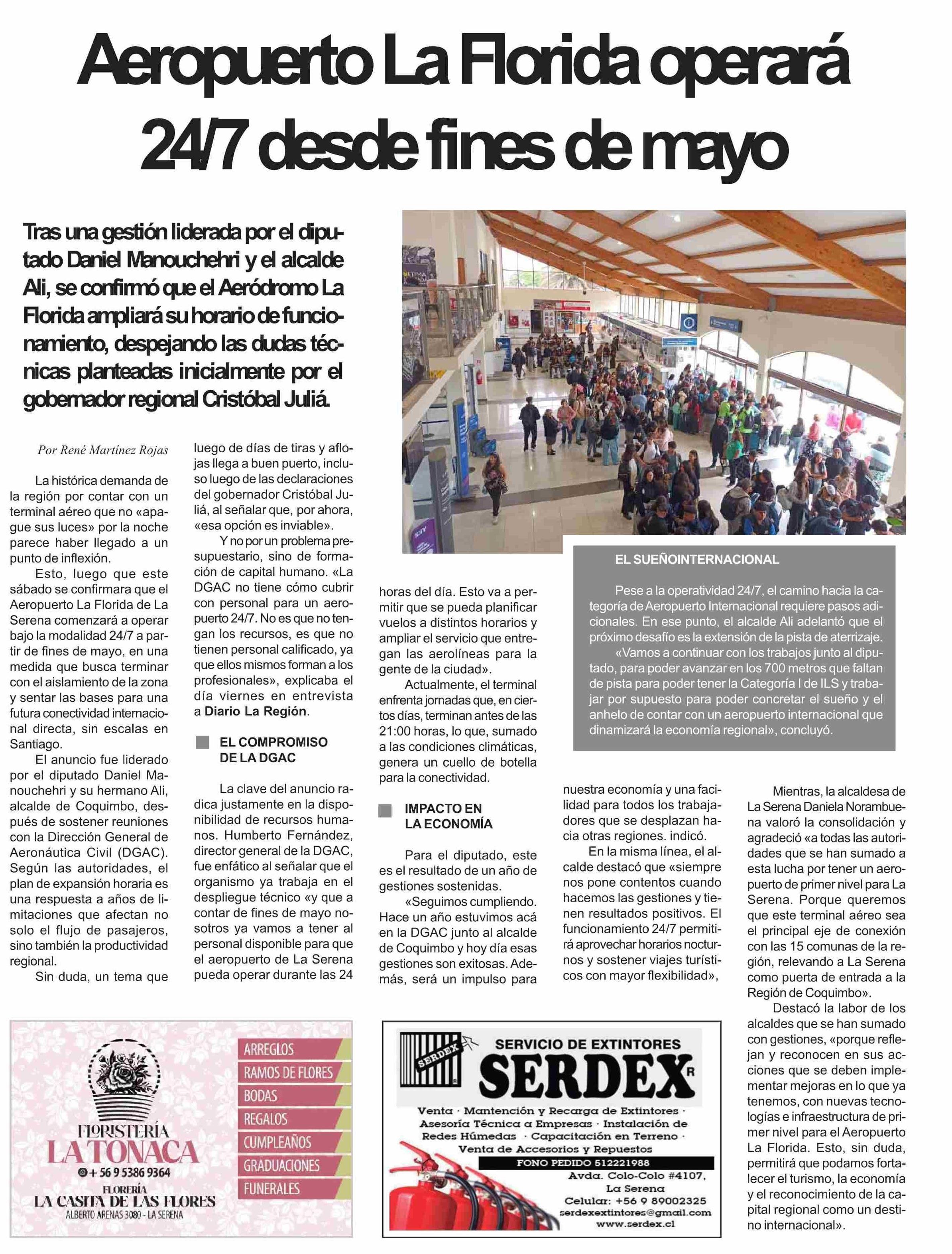 Aeropuerto La Florida operará 24/7 desde fines de mayo