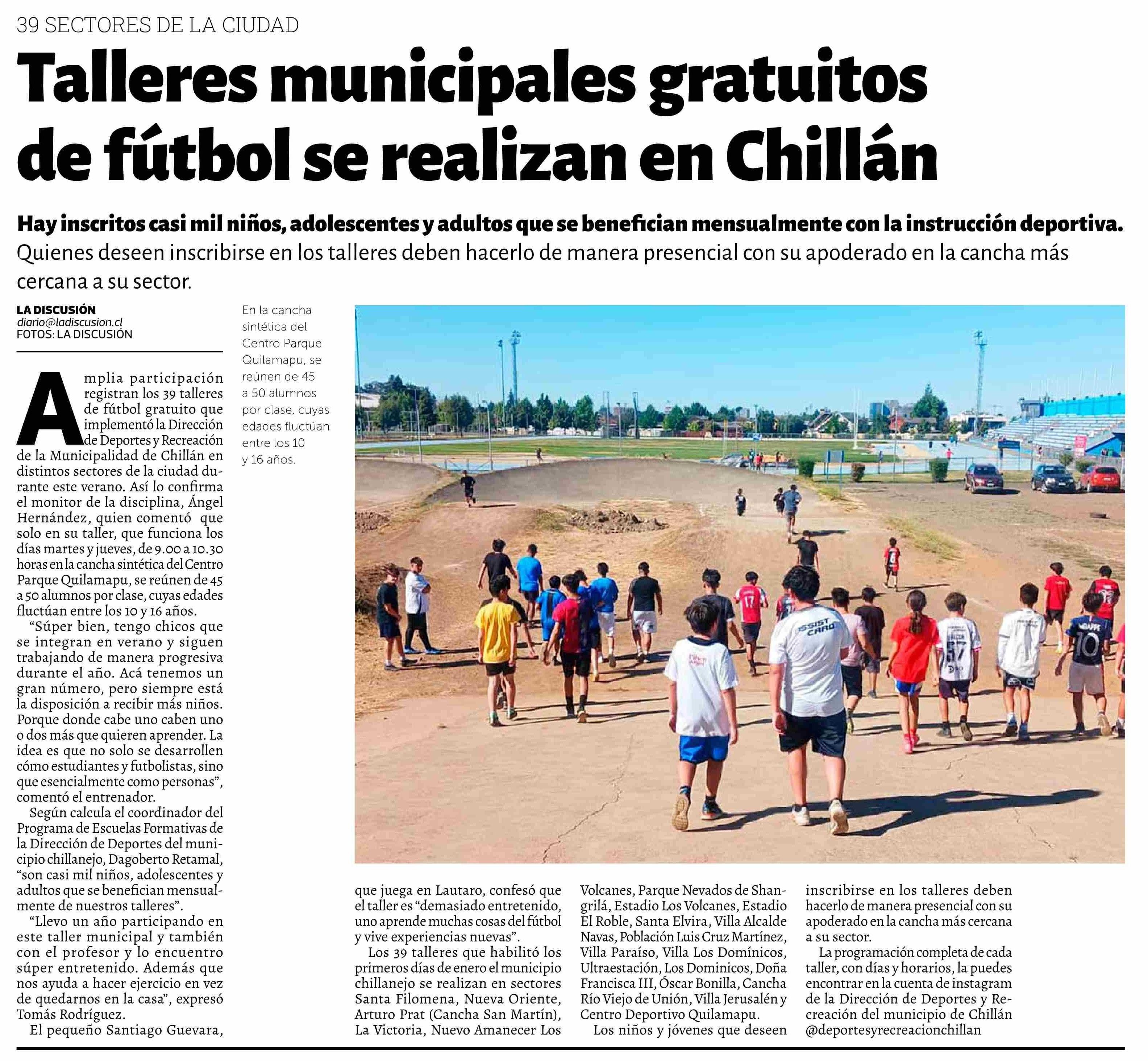 Talleres municipales gratuitos de fútbol se realizan en Chillán
