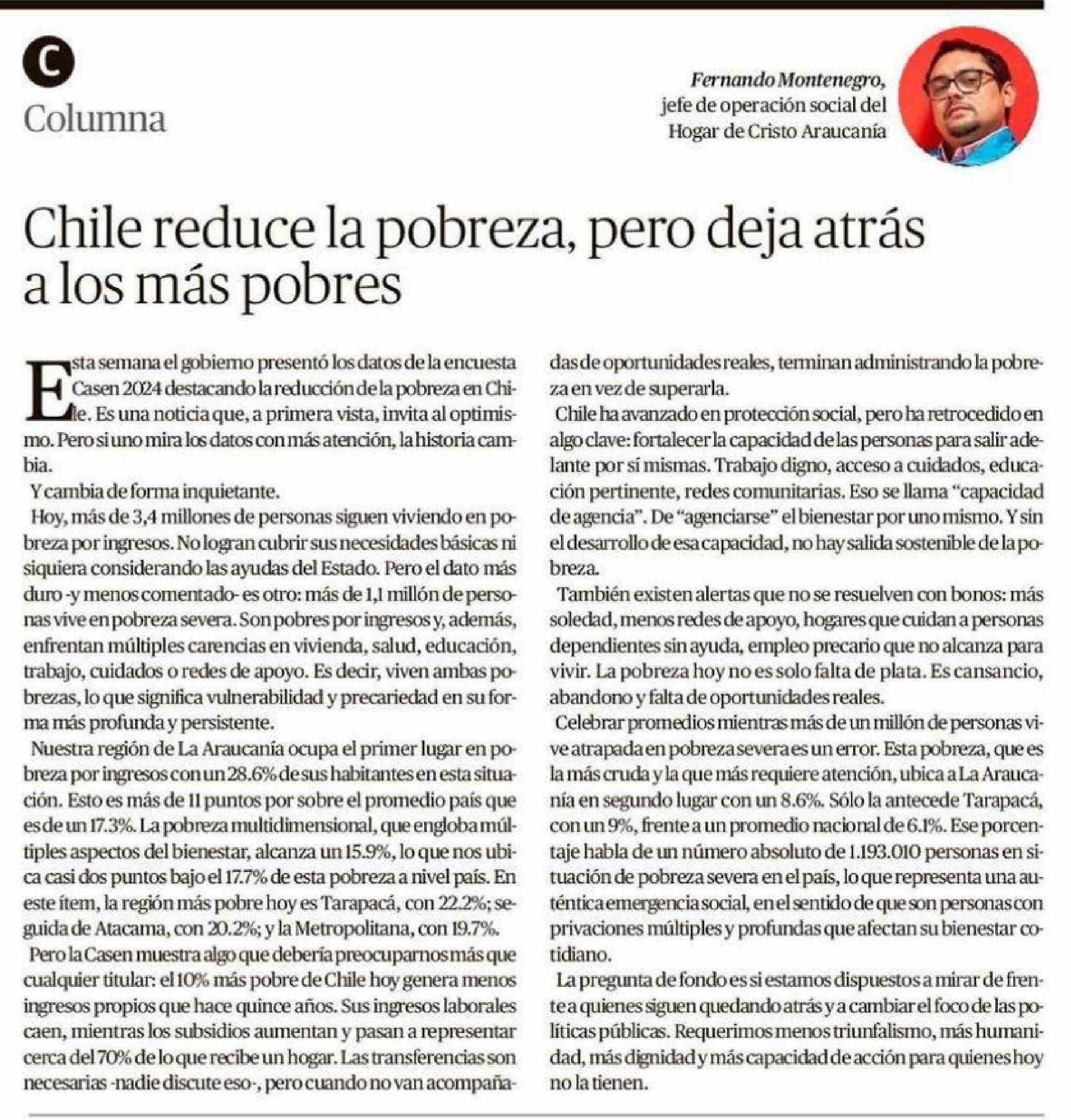 Columnas de Opinión: Chile reduce la pobreza, pero deja atrás a los más pobres