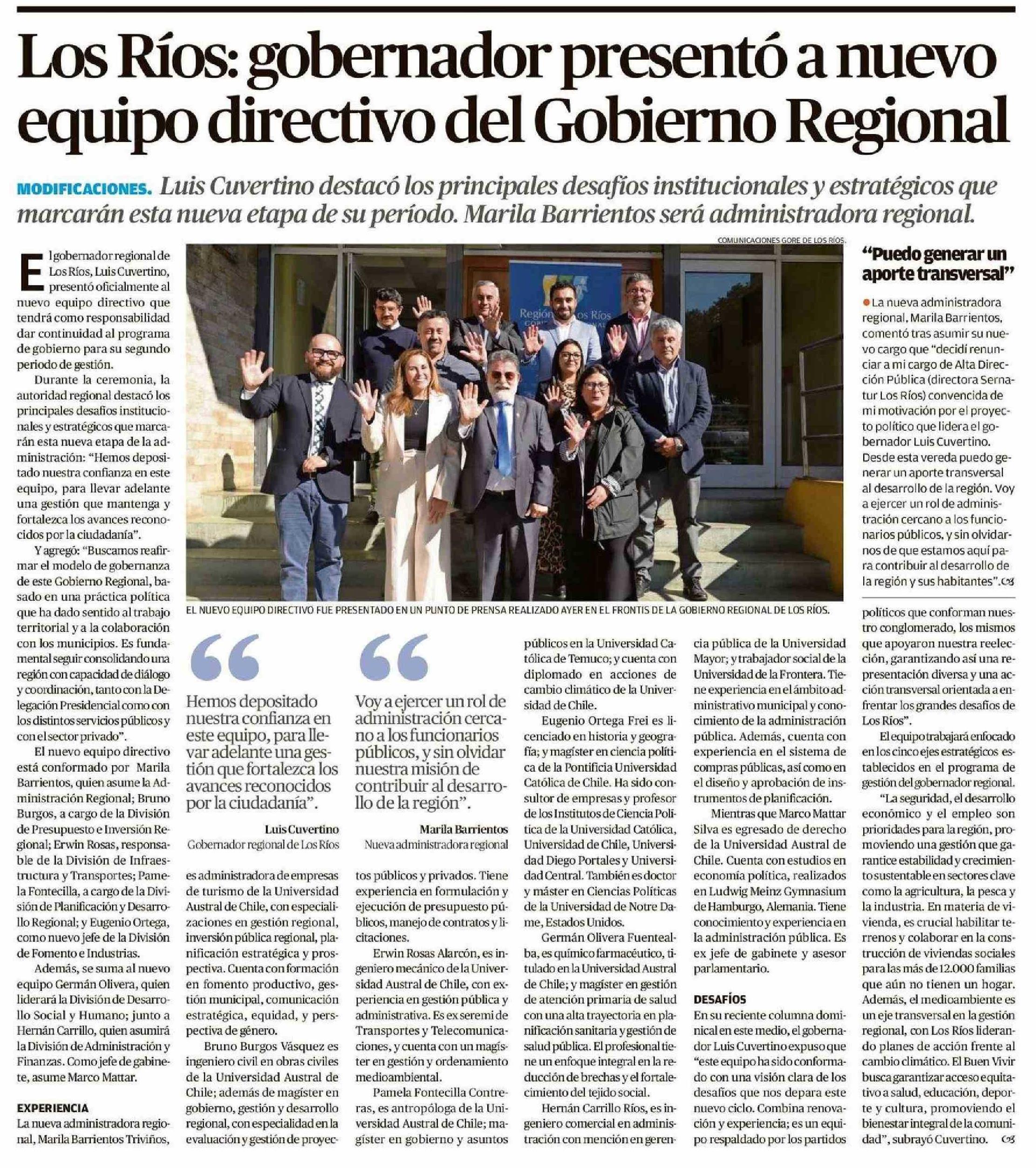 Los Ríos: gobernador presentó a nuevo equipo directivo del Gobierno Regional