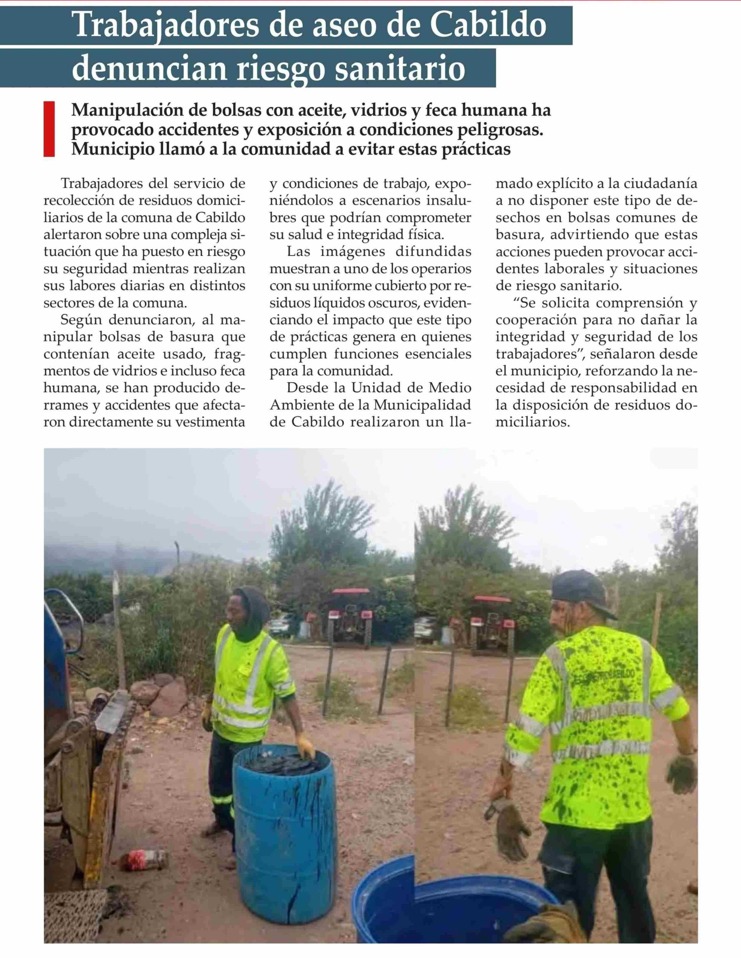 Trabajadores de aseo de Cabildo denuncian riesgo sanitario