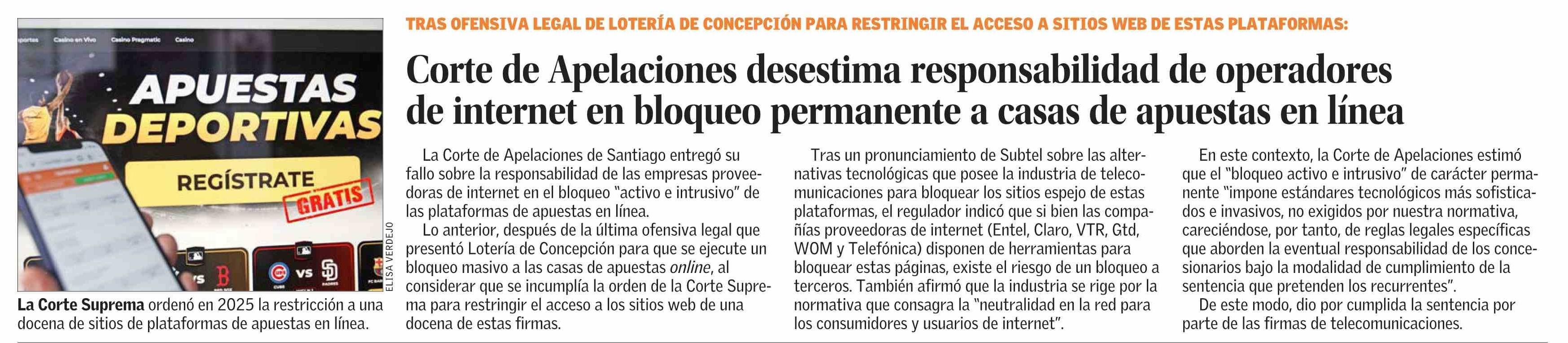Corte de Apelaciones desestima responsabilidad de operadores de internet en bloqueo permanente a casas de apuestas en línea