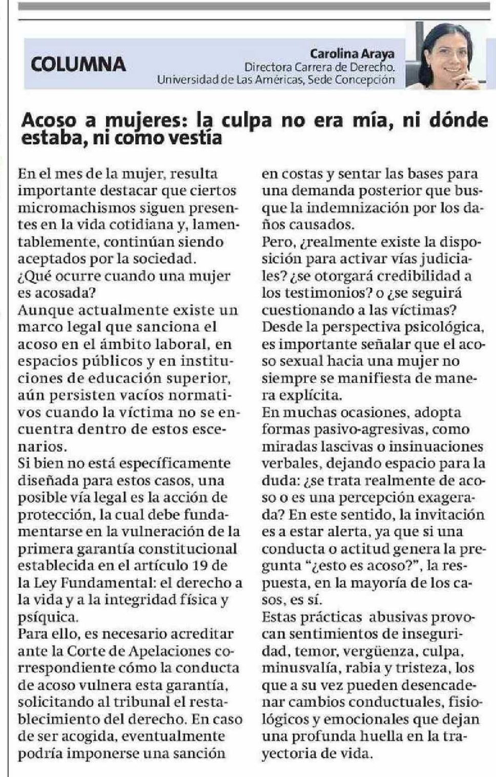 Columnas de Opinión: Acoso a mujeres: la culpa no era mía, ni dónde estaba, ni como vestía