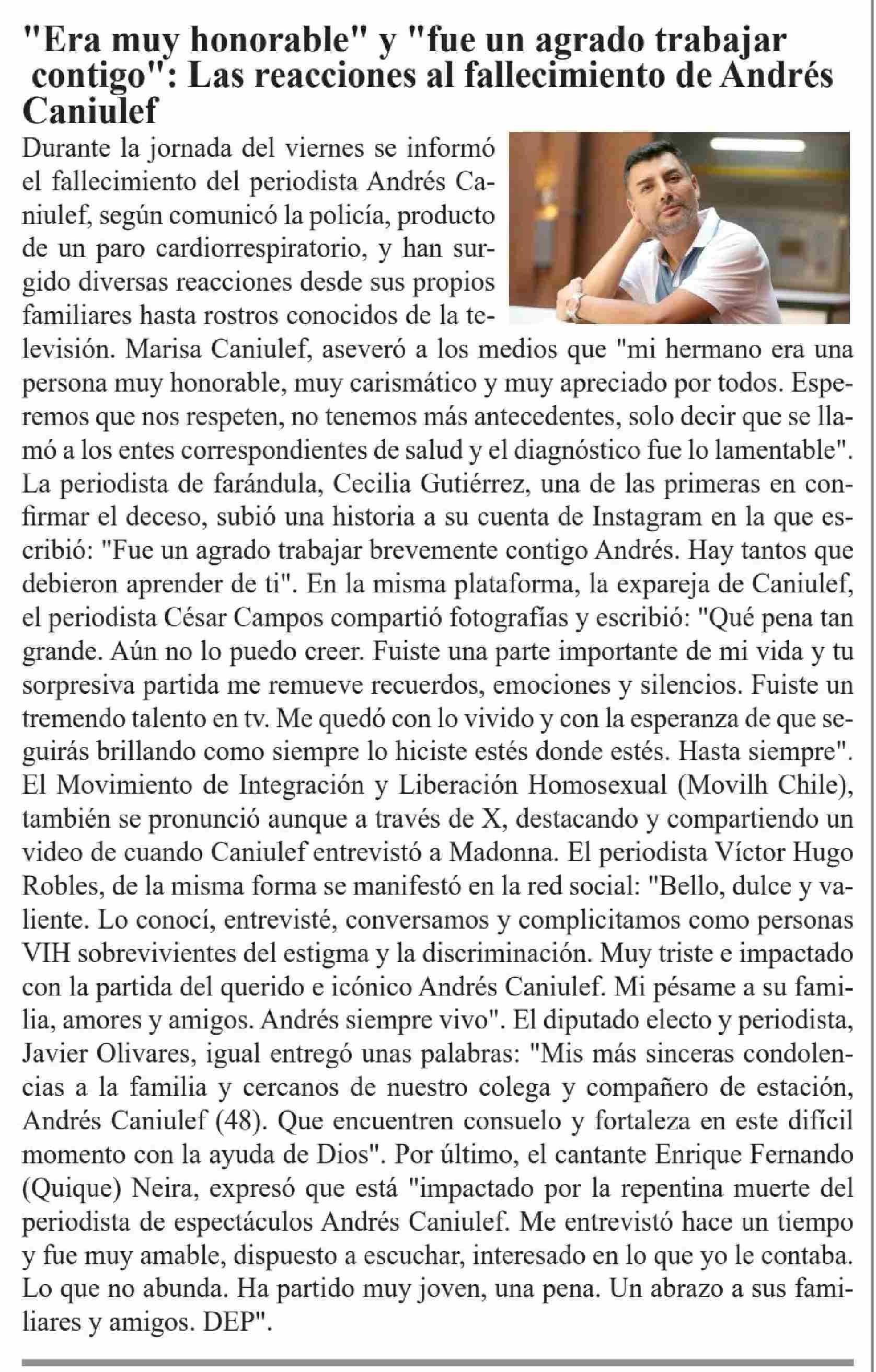 "Era muy honorable" y "fue un agrado trabajar contigo": Las reacciones al fallecimiento de Andrés Caniulef