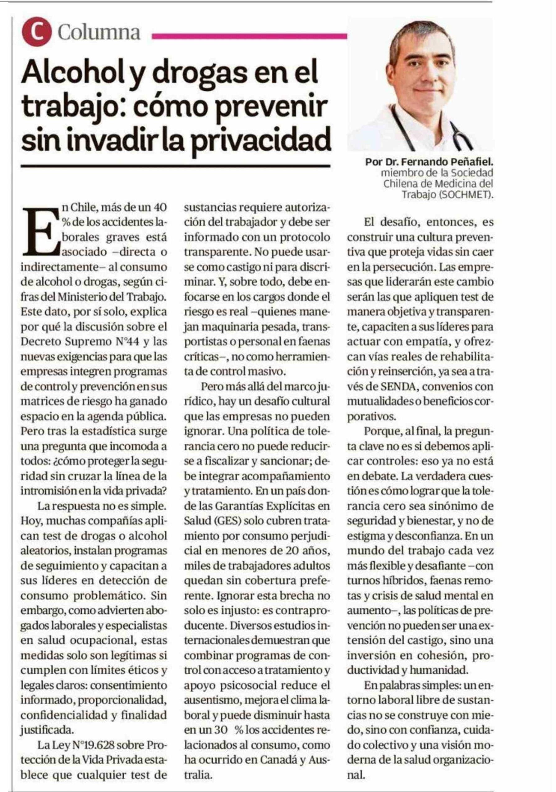 COLUMNAS DE OPINIÓN: Alcohol y drogas en el sin invadirla privacidad sin invadirla privacidad