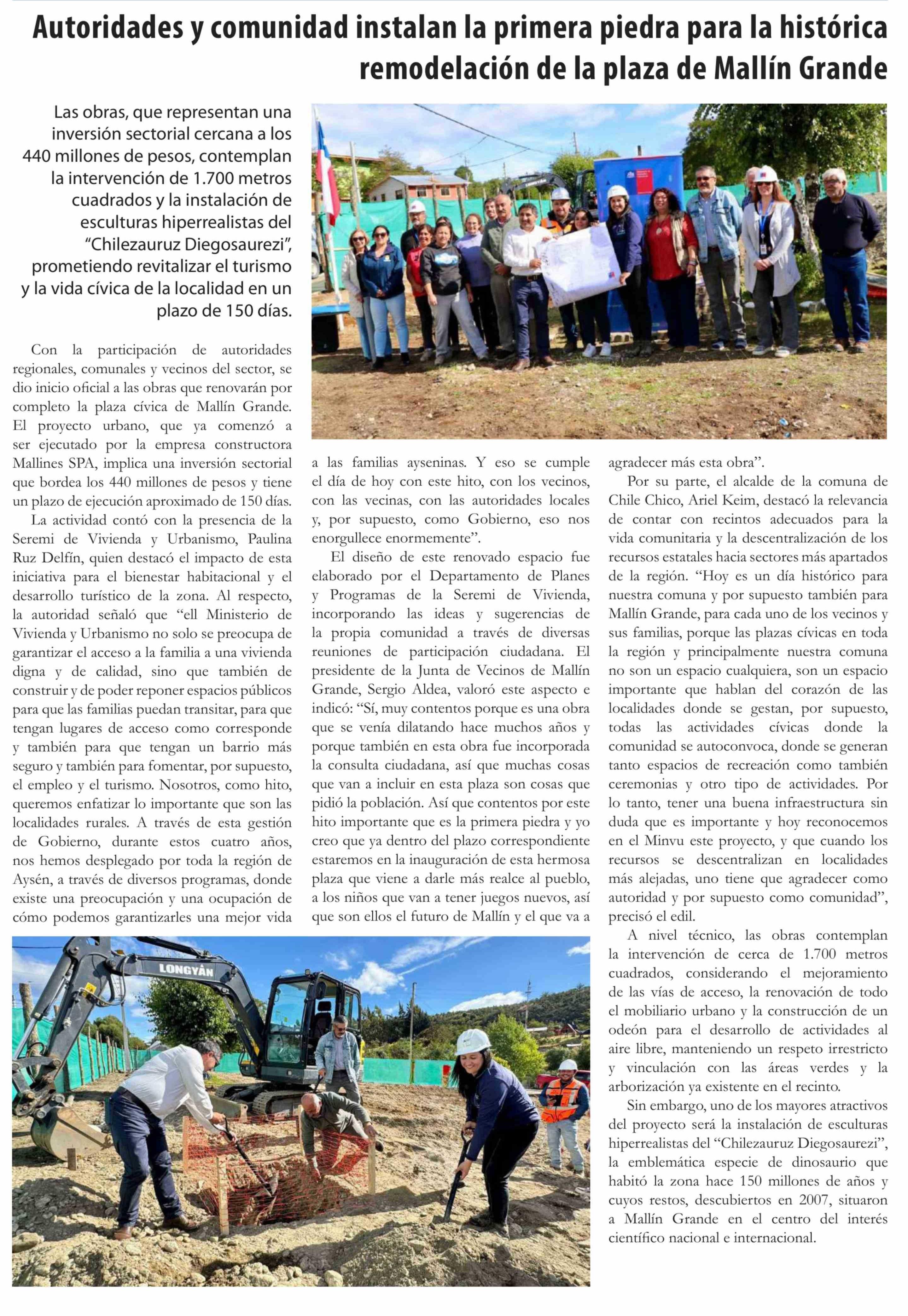 Autoridades y comunidad instalan la primera piedra para la histórica remodelación de la plaza de Mallín Grande