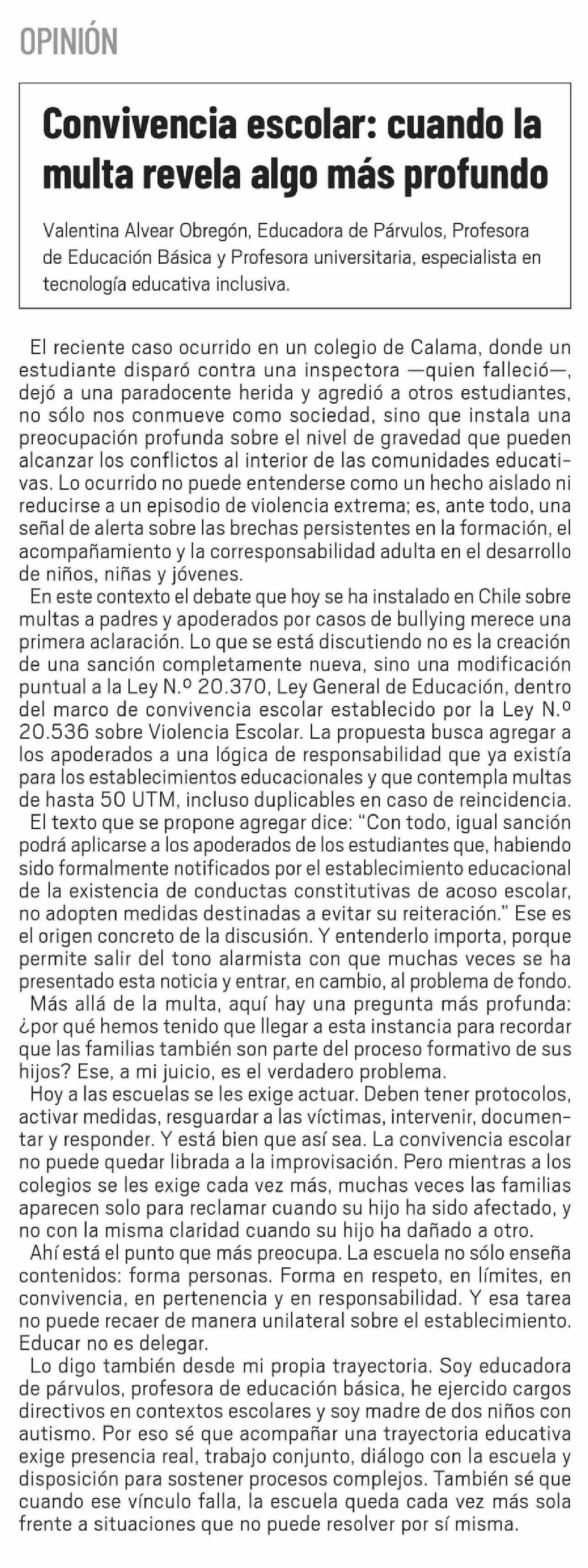 Columnas de Opinión: Convivencia escolar: cuando la multa revela algo más profundo