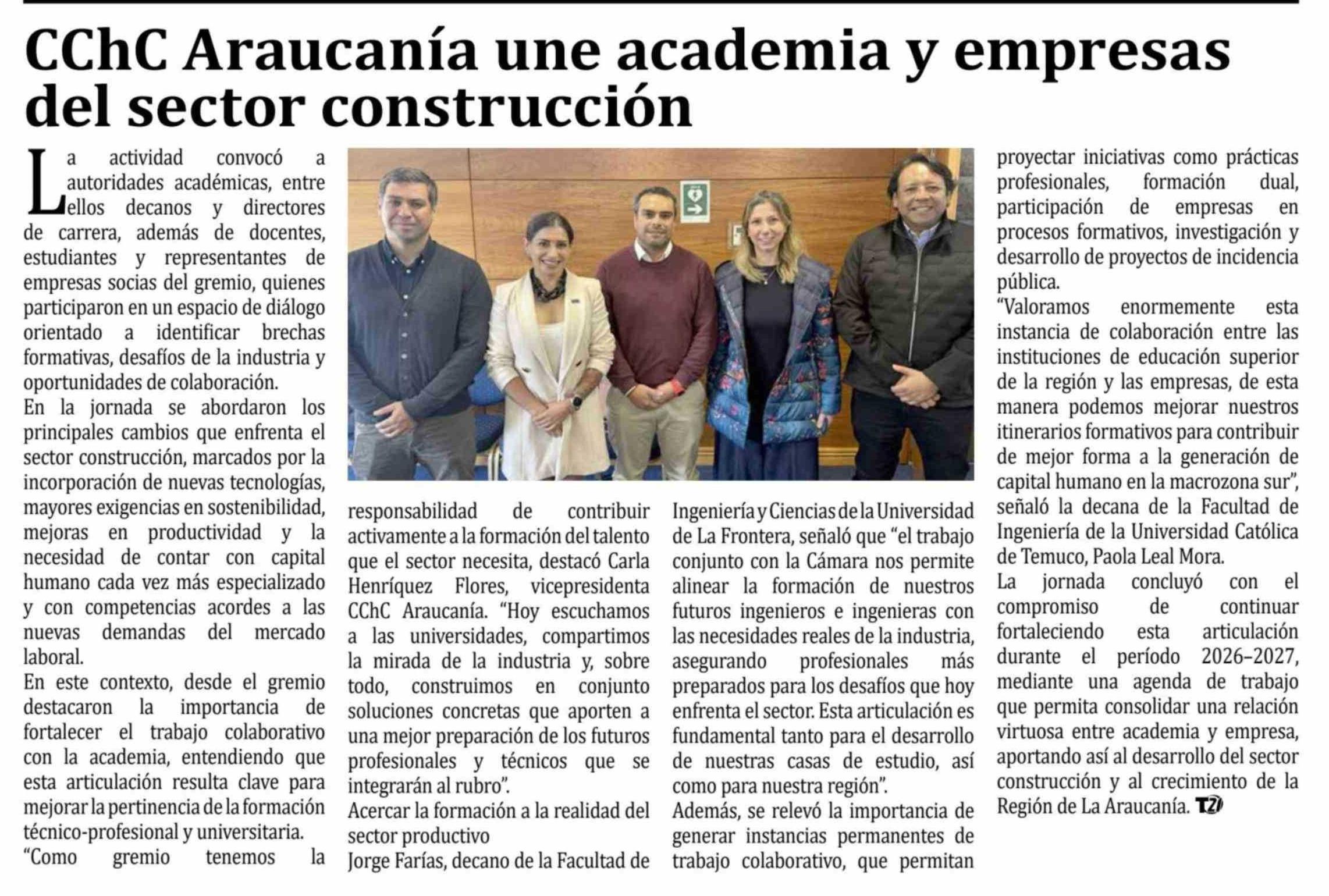 CChC Araucanía une academia y empresas del sector construcción