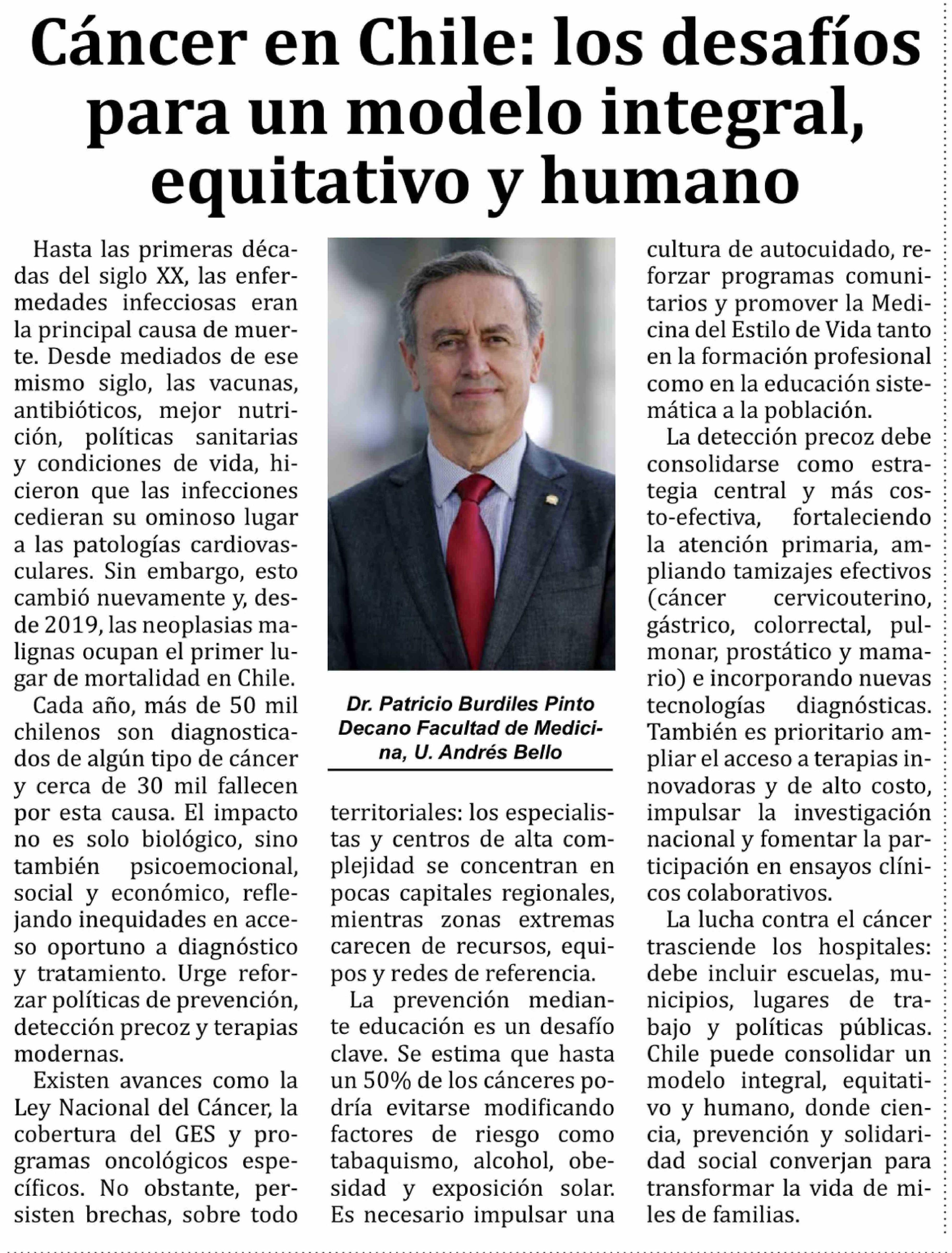 Columnas de Opinión: Cáncer en Chile: los desafíos para un modelo integral, equitativo y humano