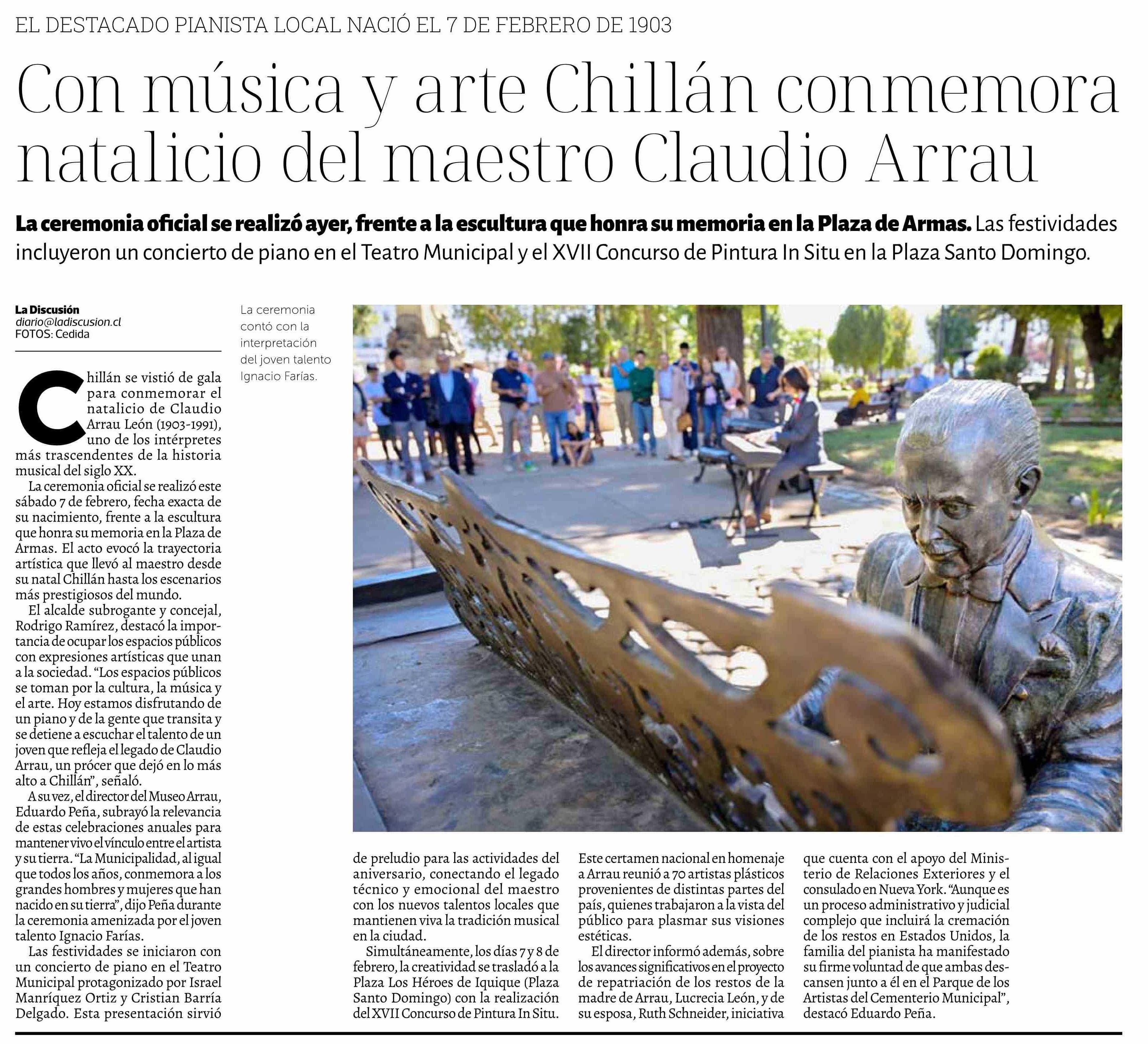Con música y arte Chillán conmemora natalicio del maestro Claudio Arrau