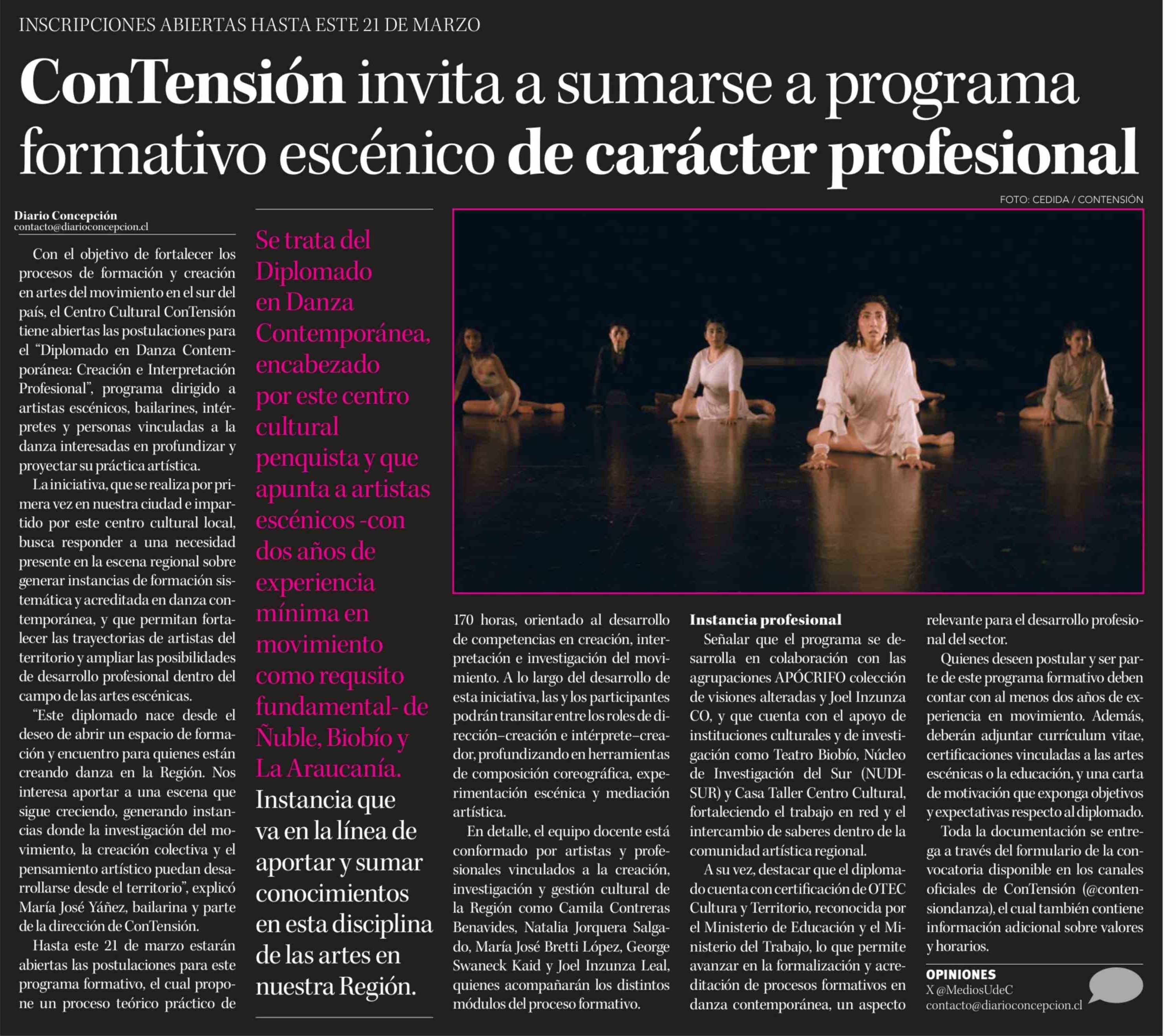 ConTensión invita a sumarse a programa formativo escénico de carácter profesional
