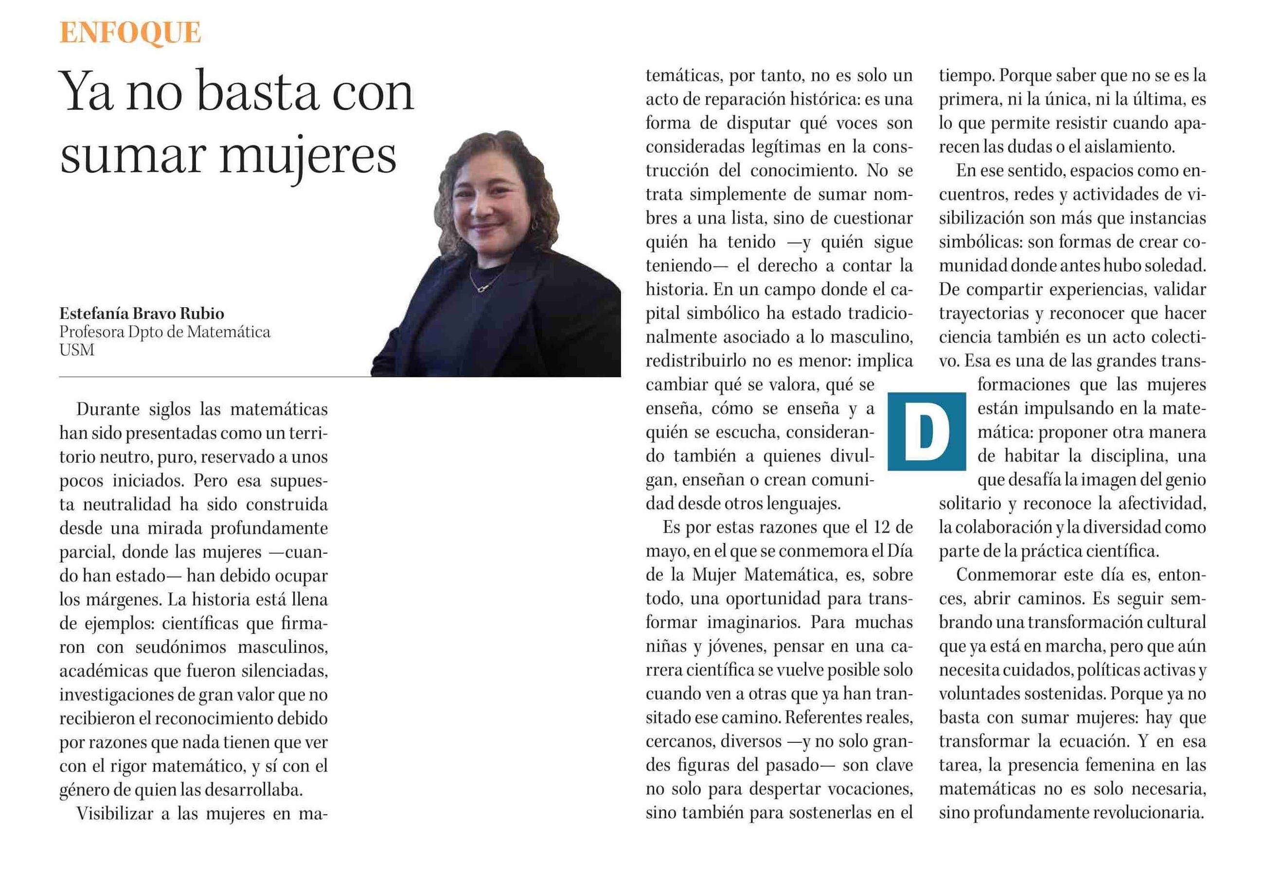 COLUMNAS DE OPINIÓN: Ya no basta con sumar mujeres