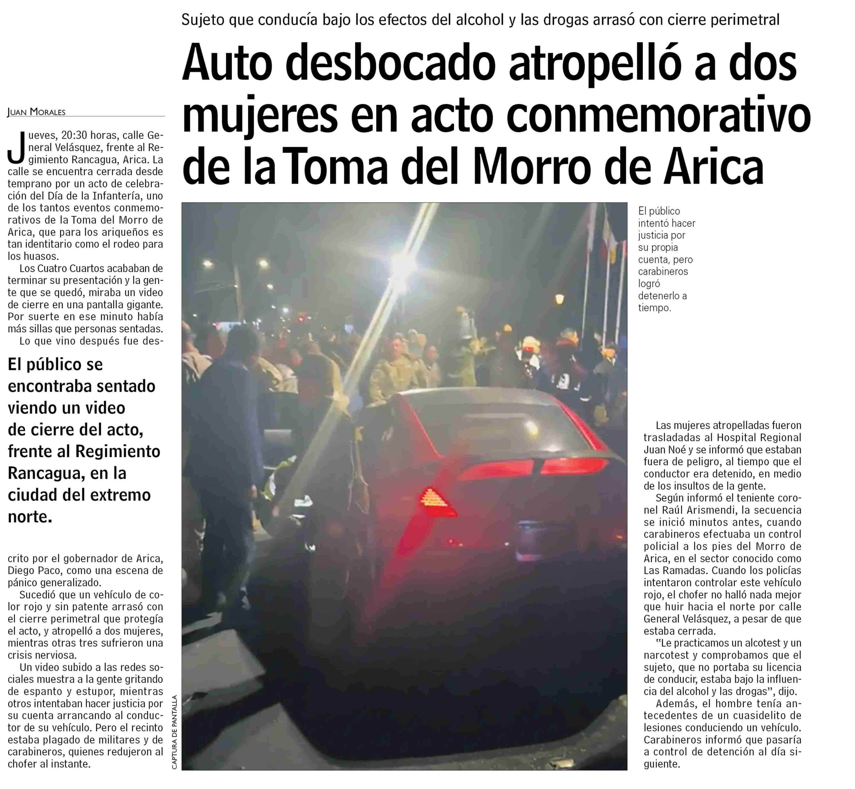 Auto desbocado atropelló a dos mujeres en acto conmemorativo de la Toma del Morro de Arica