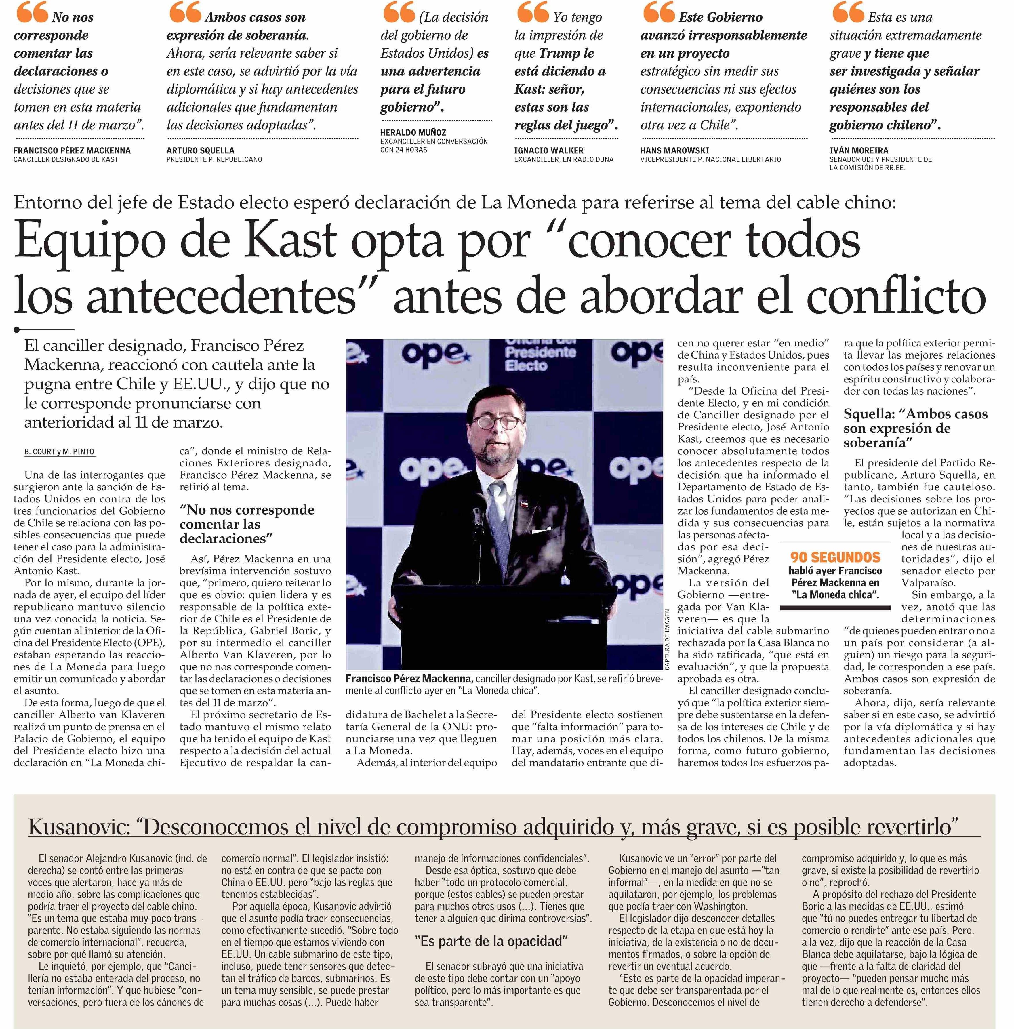 Equipo de Kast opta por “conocer todos los antecedentes” antes de abordar el conflicto