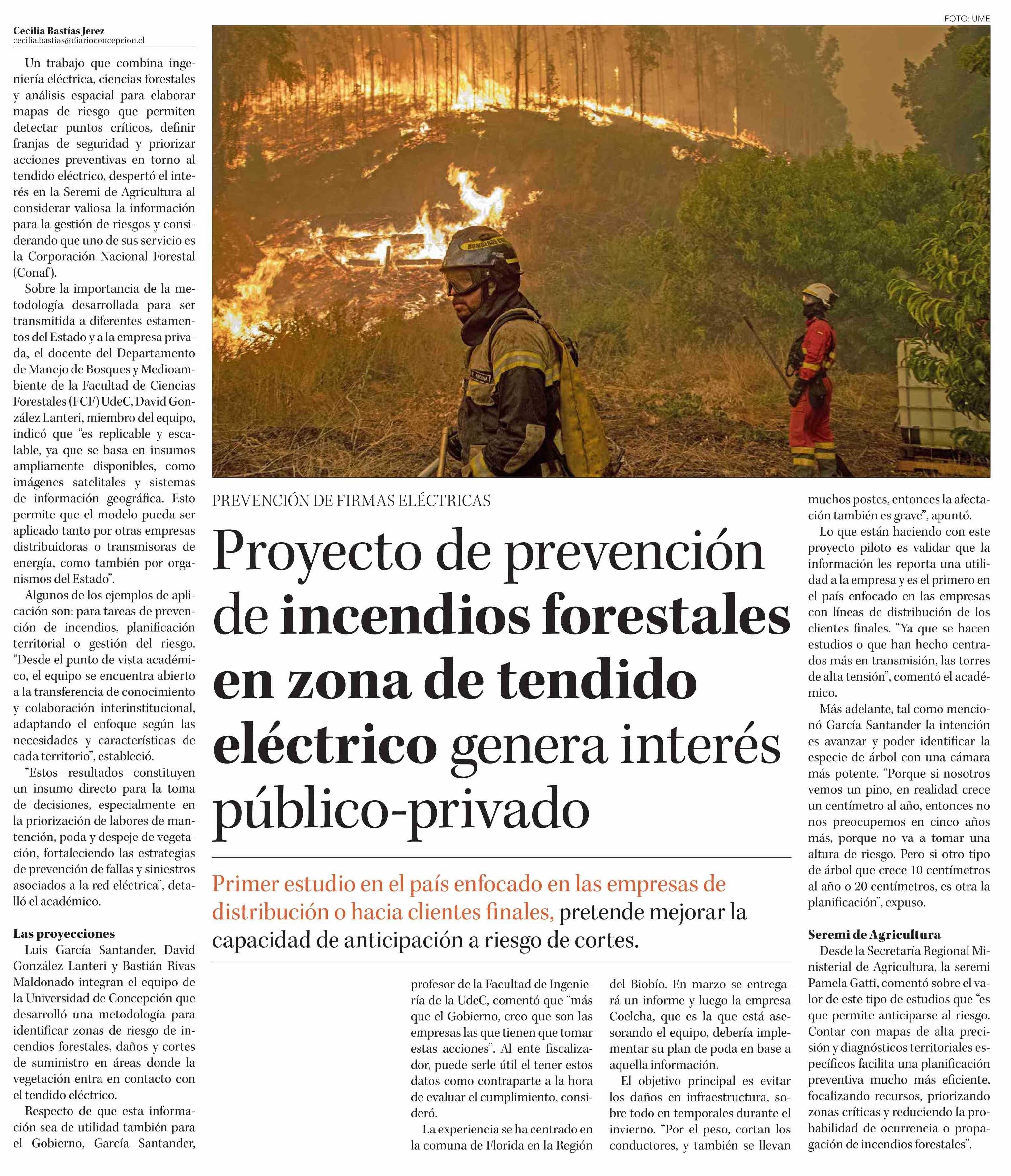 Proyecto de prevención de incendios forestales en zona de tendido eléctrico genera interés público-privado