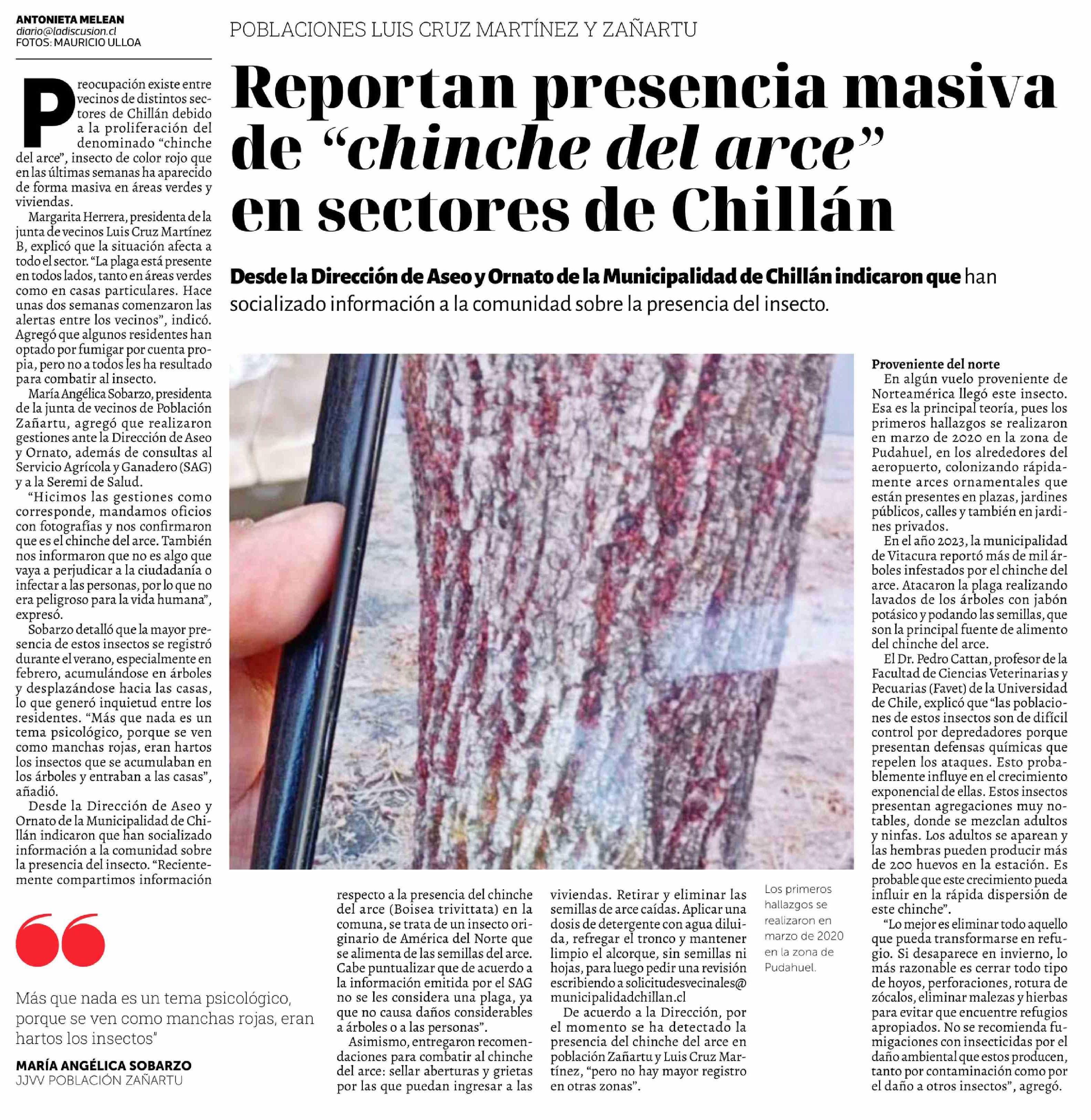 Título: Reportan presencia masiva de "chinche del arce" en sectores de Chillán