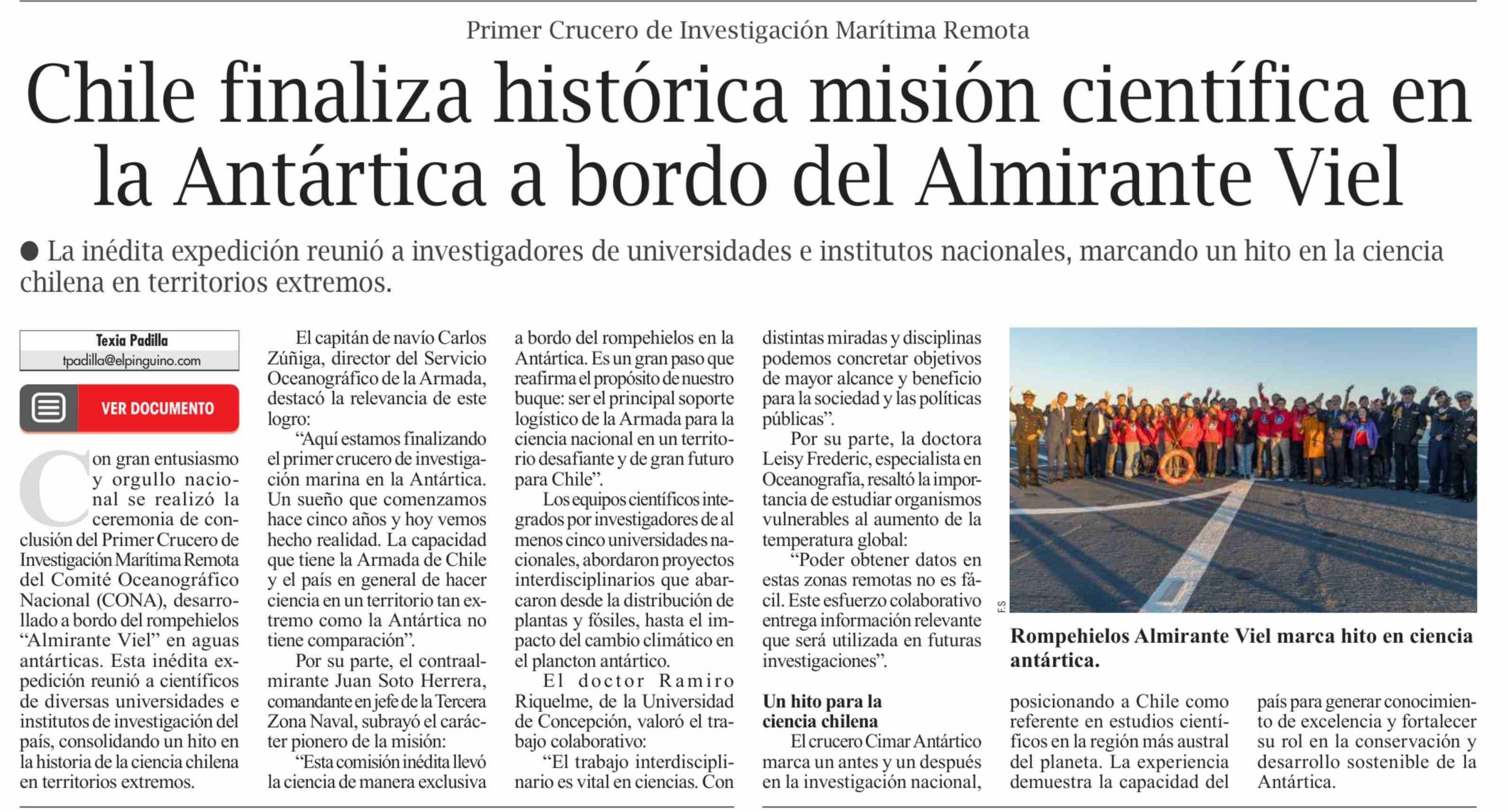 Chile finaliza histórica misión científica en la Antártica a bordo del Almirante Viel