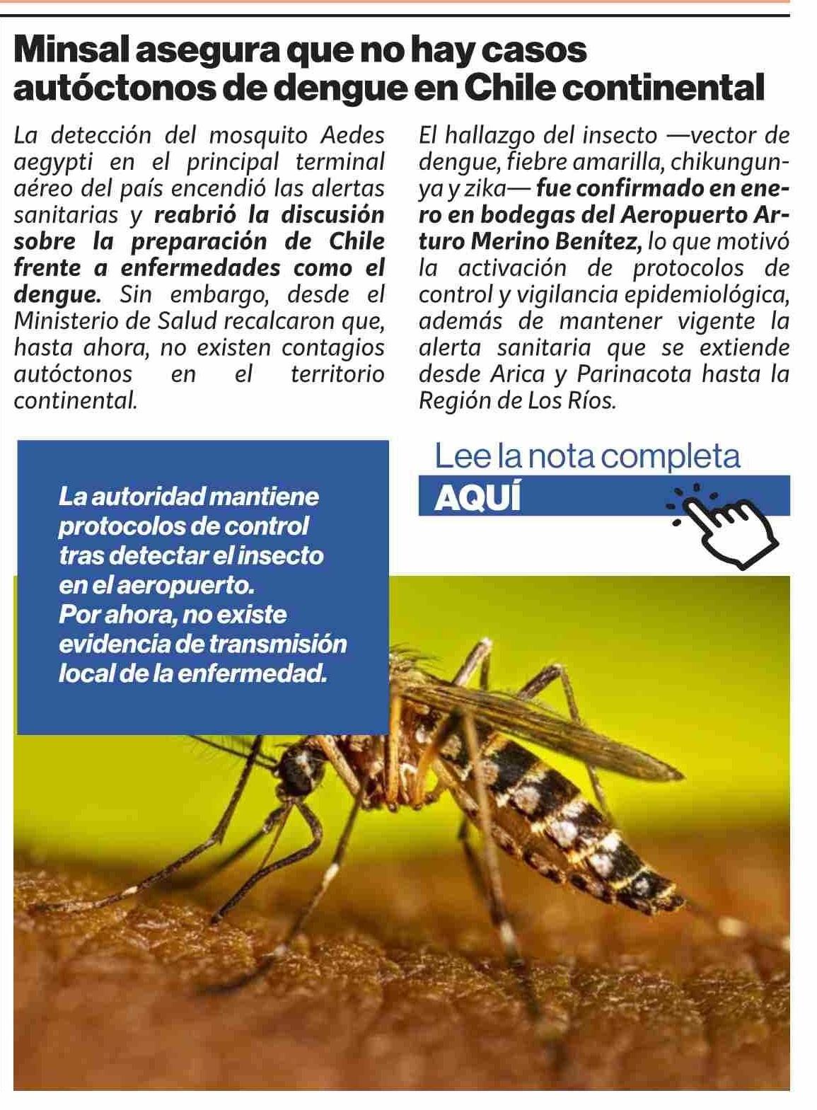 Minsal asegura que no hay casos autóctonos de dengue en Chile continental