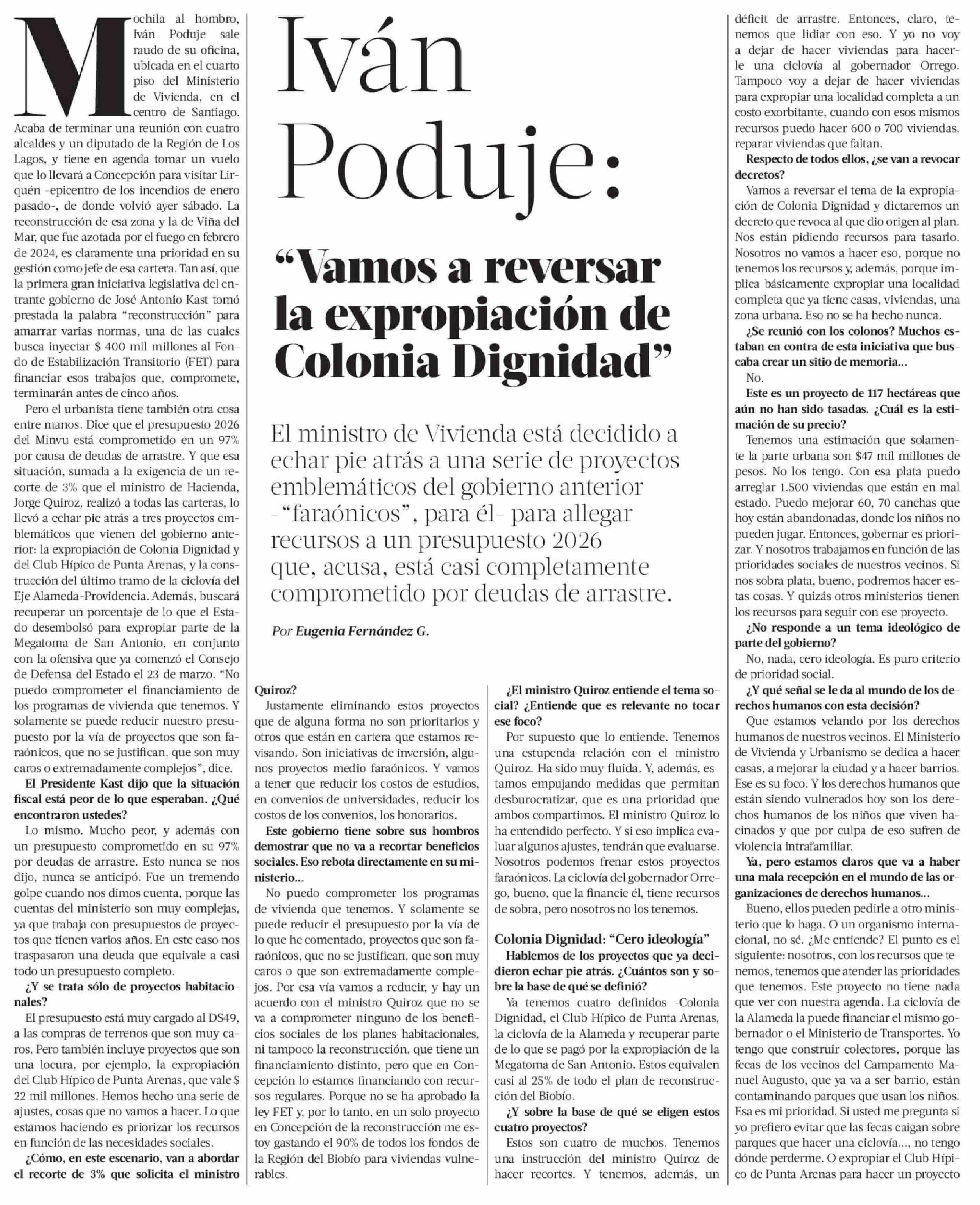 Iván Poduje: "Vamos a reversar la expropiación de Colonia Dignidad"