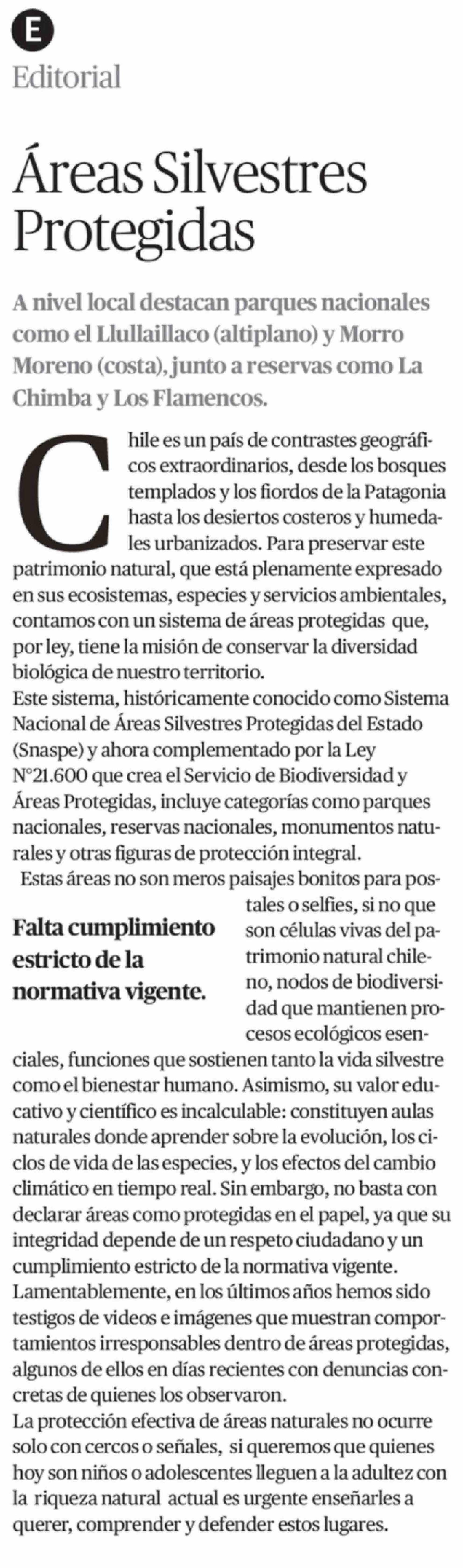 Editorial: Áreas Silvestres Protegidas