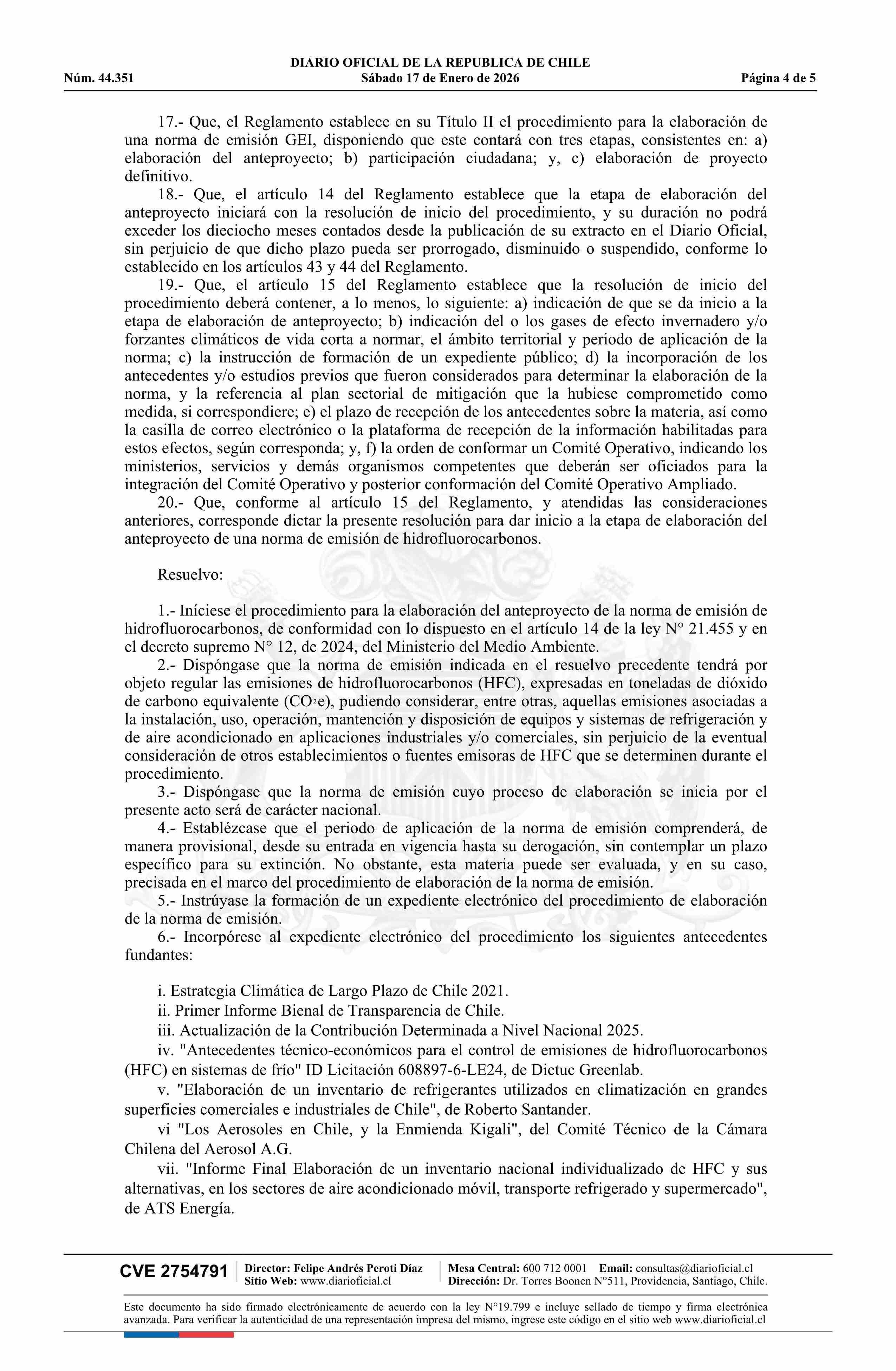 | Título: | Resolución exenta número 9.634, de 2025.- Da inicio al procedimiento de elaboración del anteproyecto de la Norma de Emisión de Hidrofluorocarbonos |