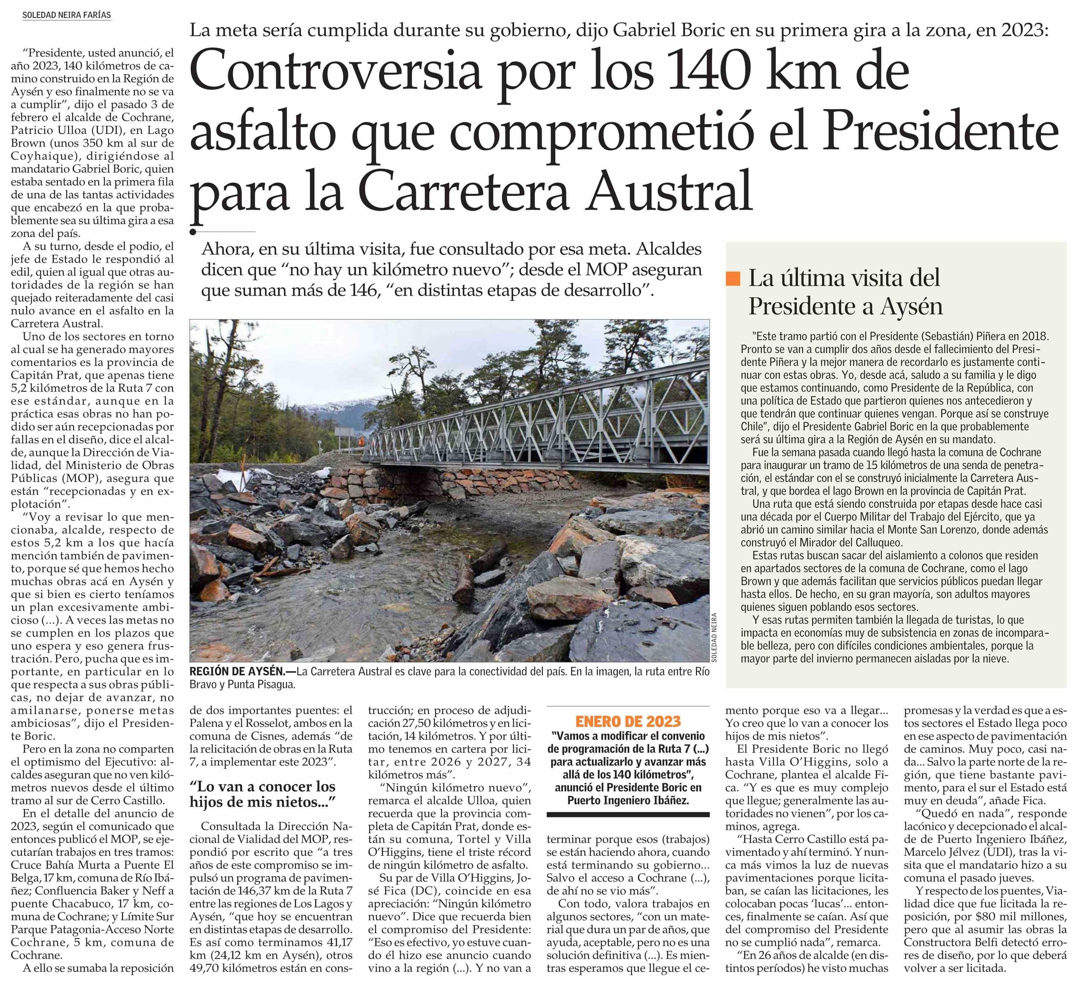 Controversia por los 140 km de asfalto que comprometió el Presidente para la Carretera Austral