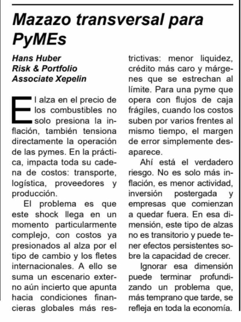 Columnas de Opinión: Mazazo transversal para PyMES