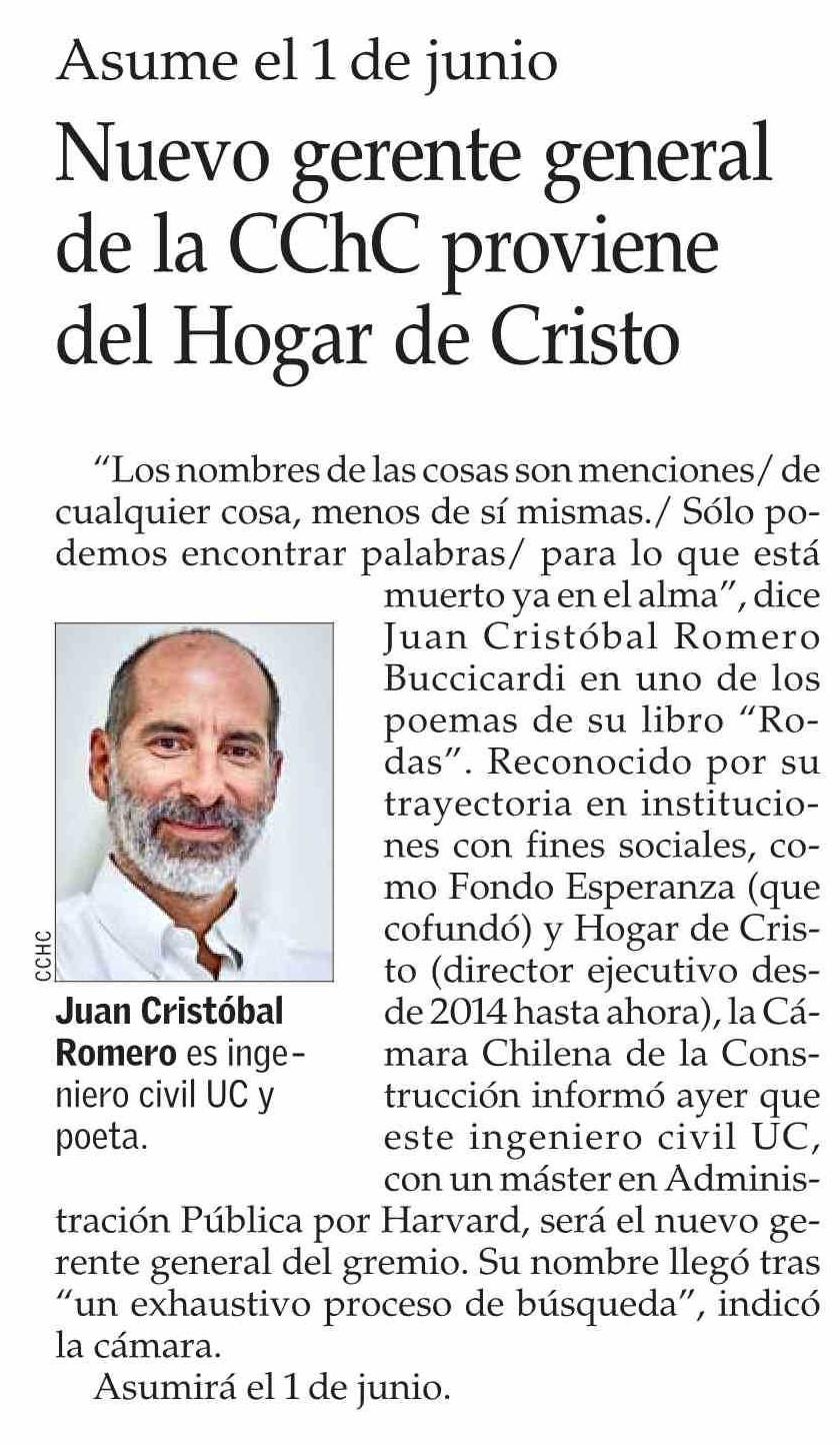 Título: Nuevo gerente general de la CChC proviene del Hogar de Cristo