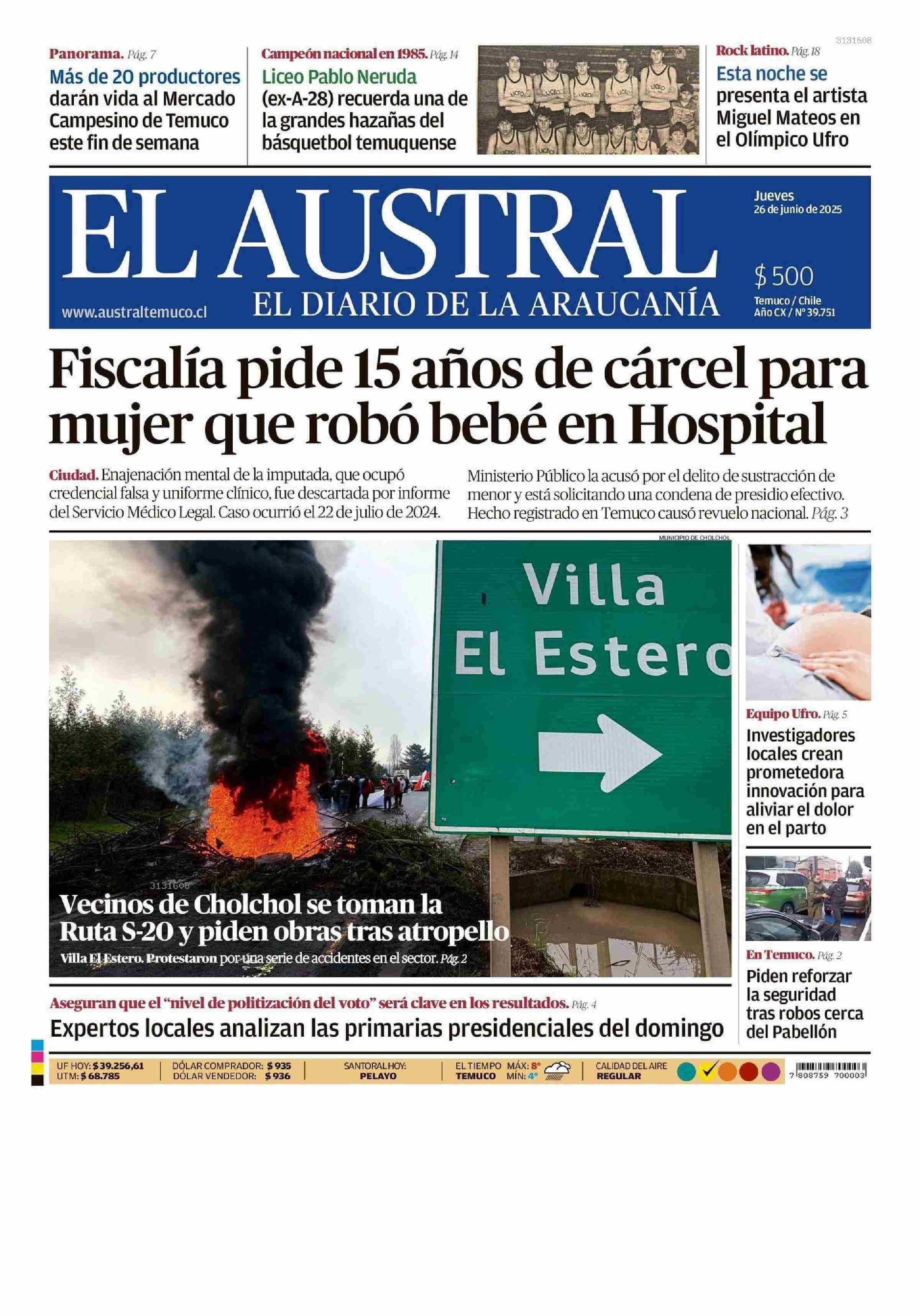 PORTADA EL AUSTRAL DE LA ARAUCANÍA CHILE
