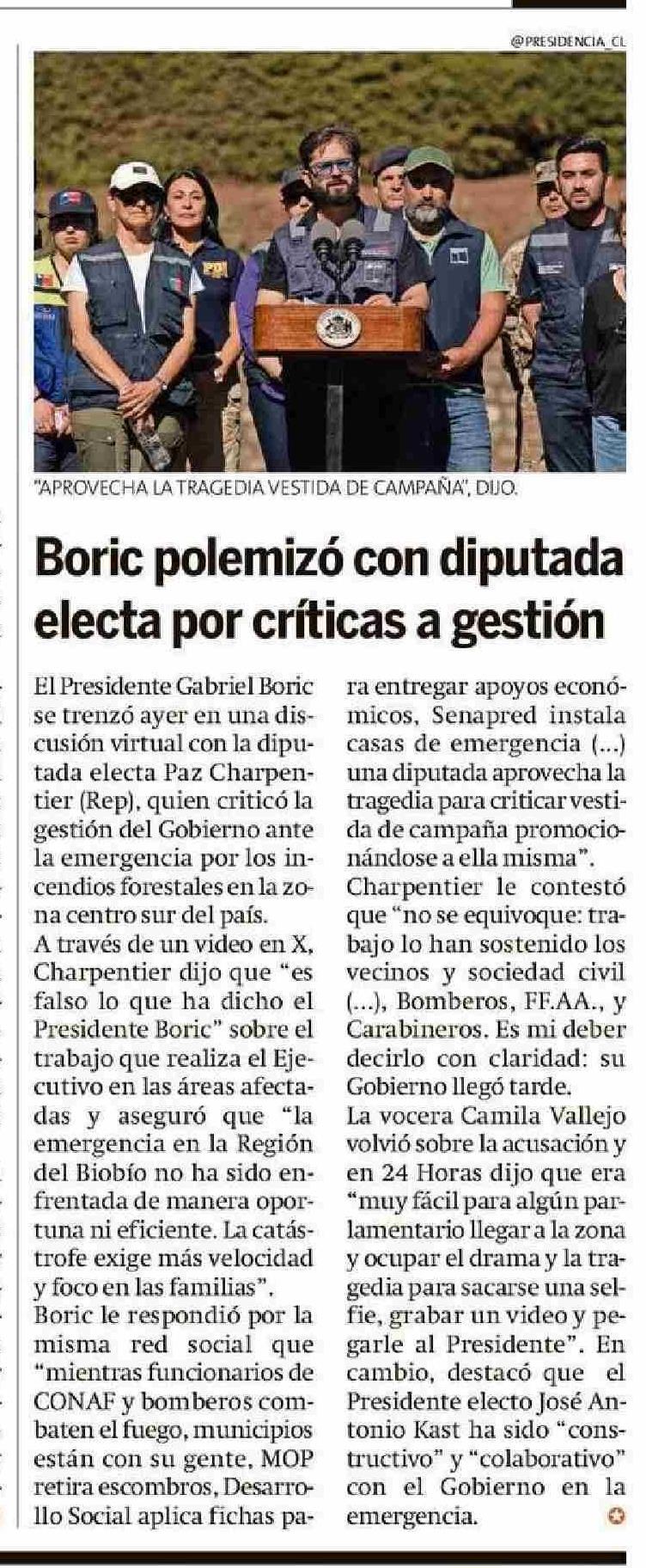 Boric polemizó con diputada electa por críticas a gestión