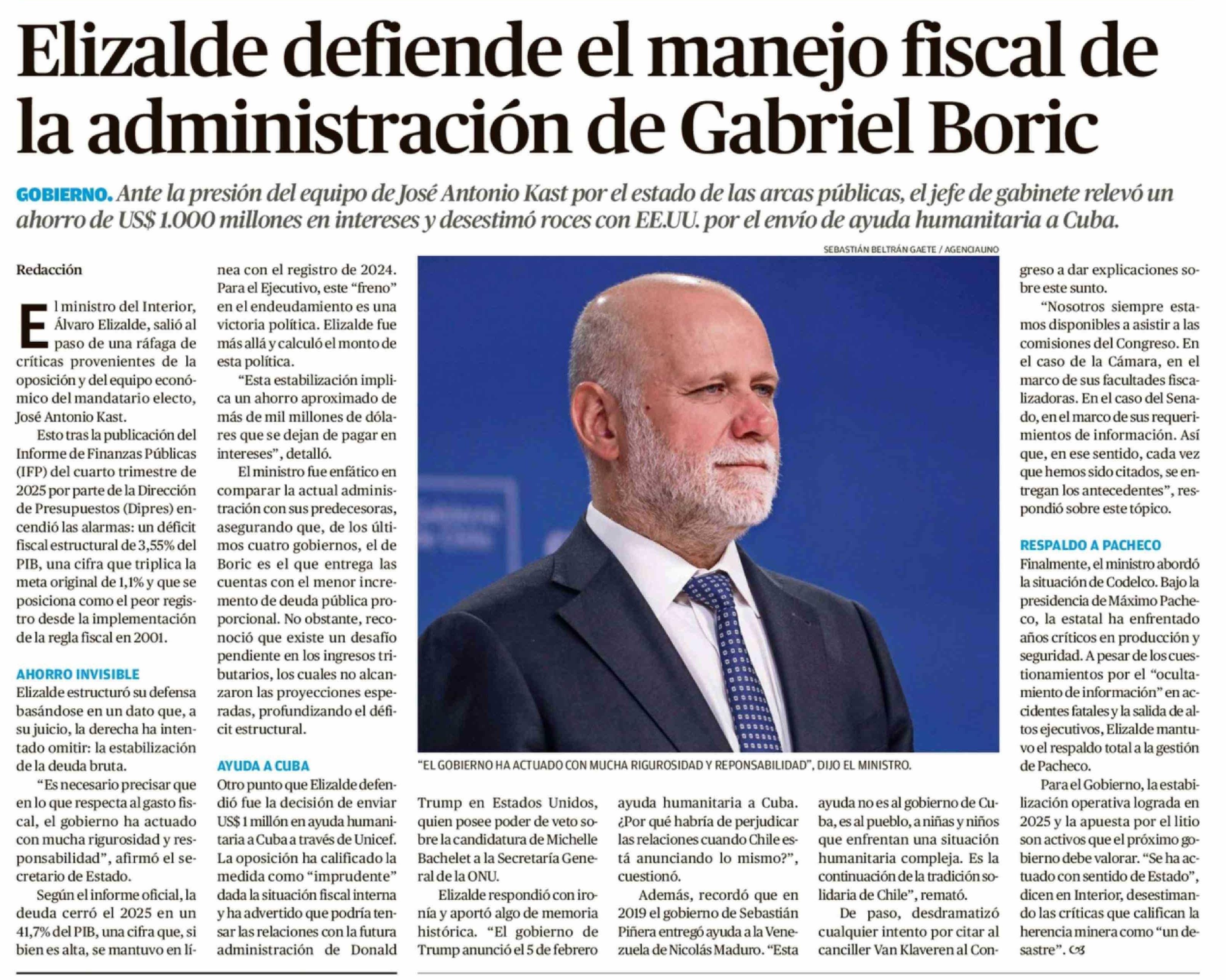 Elizalde defiende el manejo fiscal de la administración de Gabriel Boric