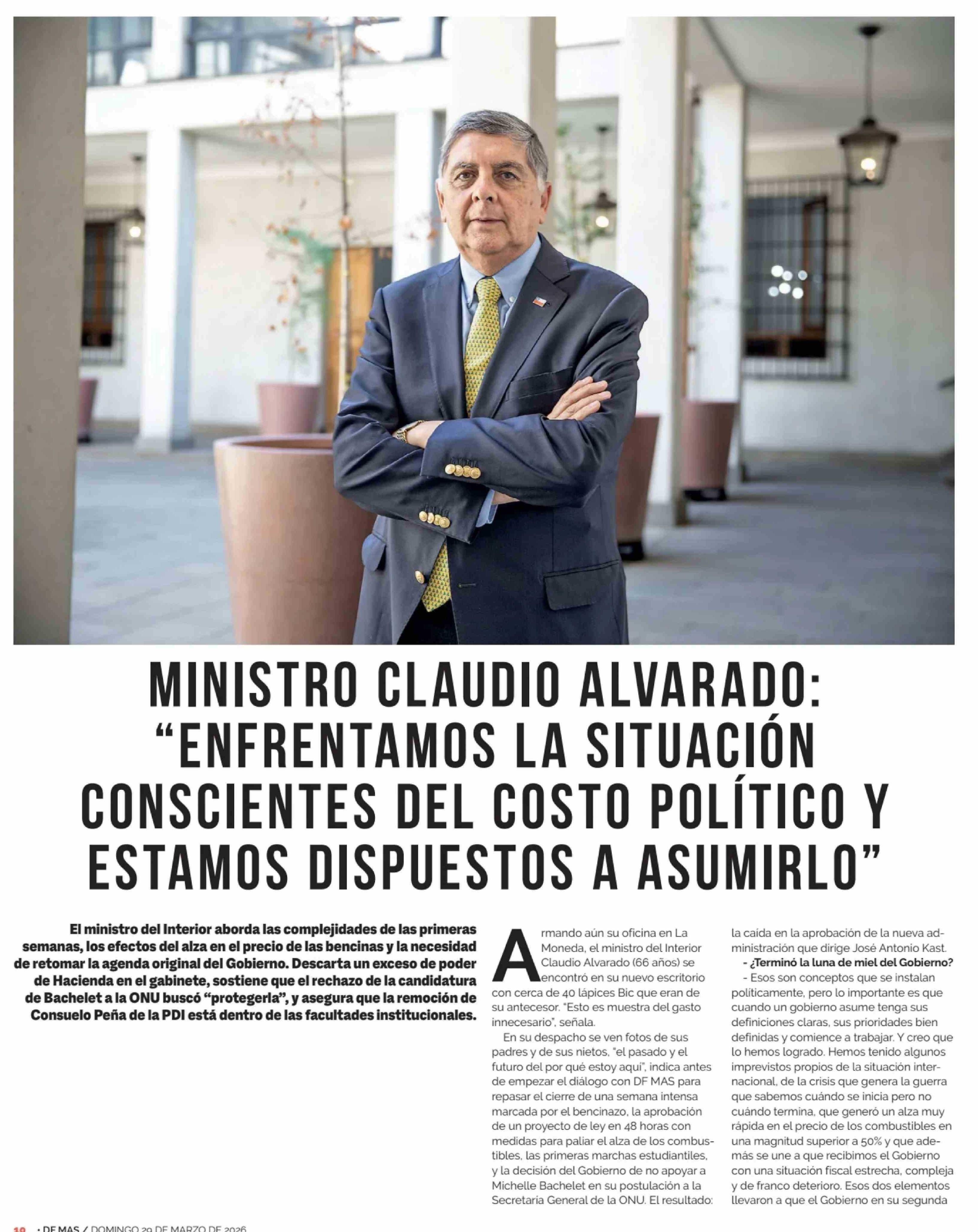 MINISTRO CLAUDIO ALVARADO: "ENFRENTAMOS LA SITUACIÓN CONSCIENTES DEL COSTO POLÍTICO Y ESTAMOS DISPUESTOS A ASUMIRLO"