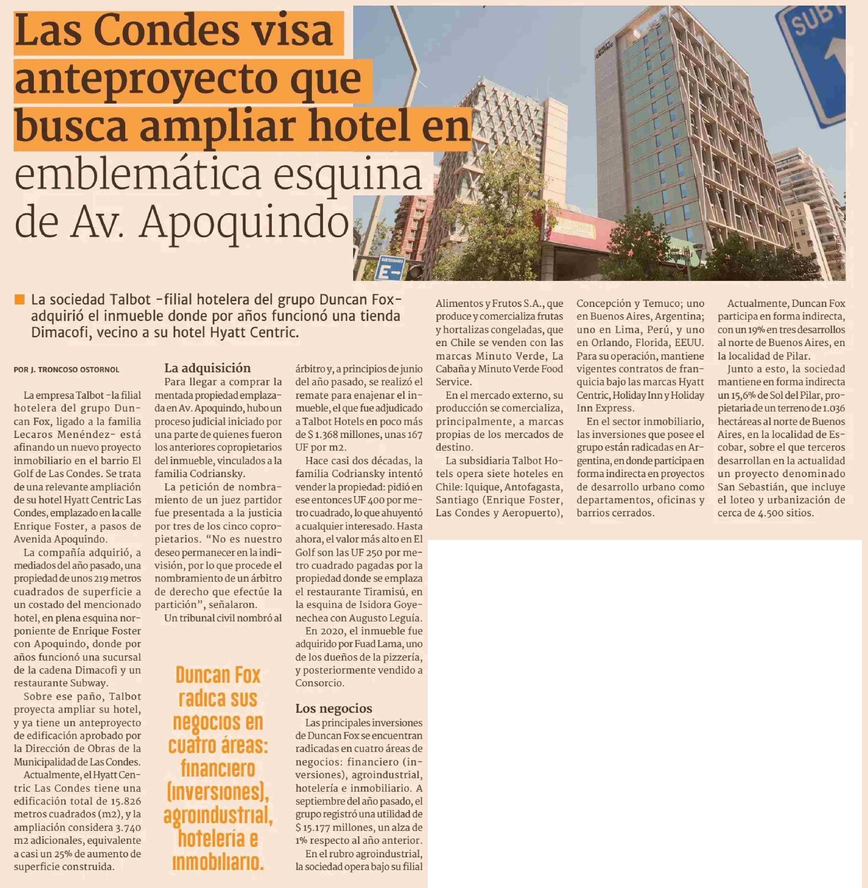 Las Condes visa anteproyecto que busca ampliar hotel en emblemática esquina de Av. Apoquindo
