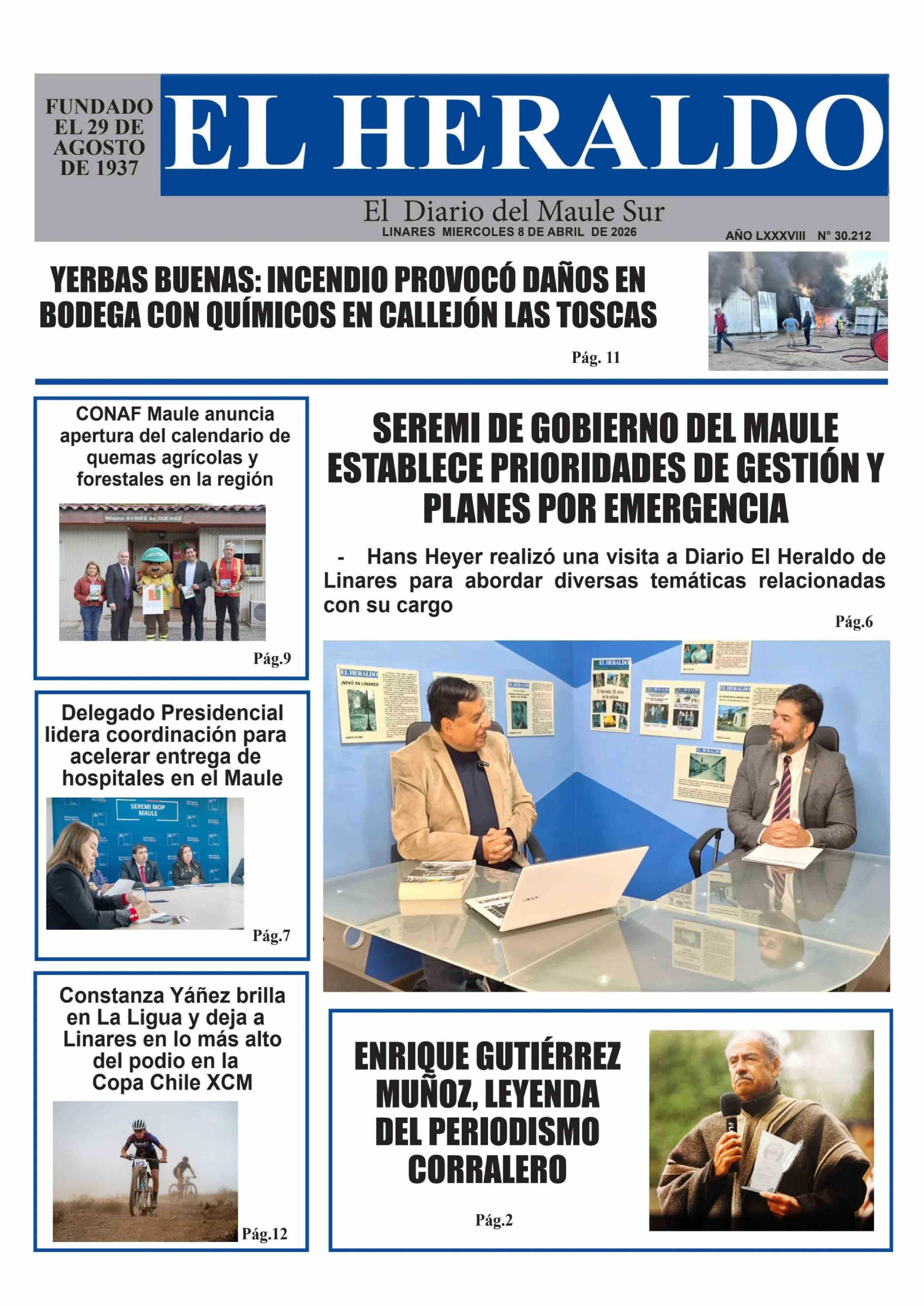 PORTADA EL HERALDO DE LINARES CHILE