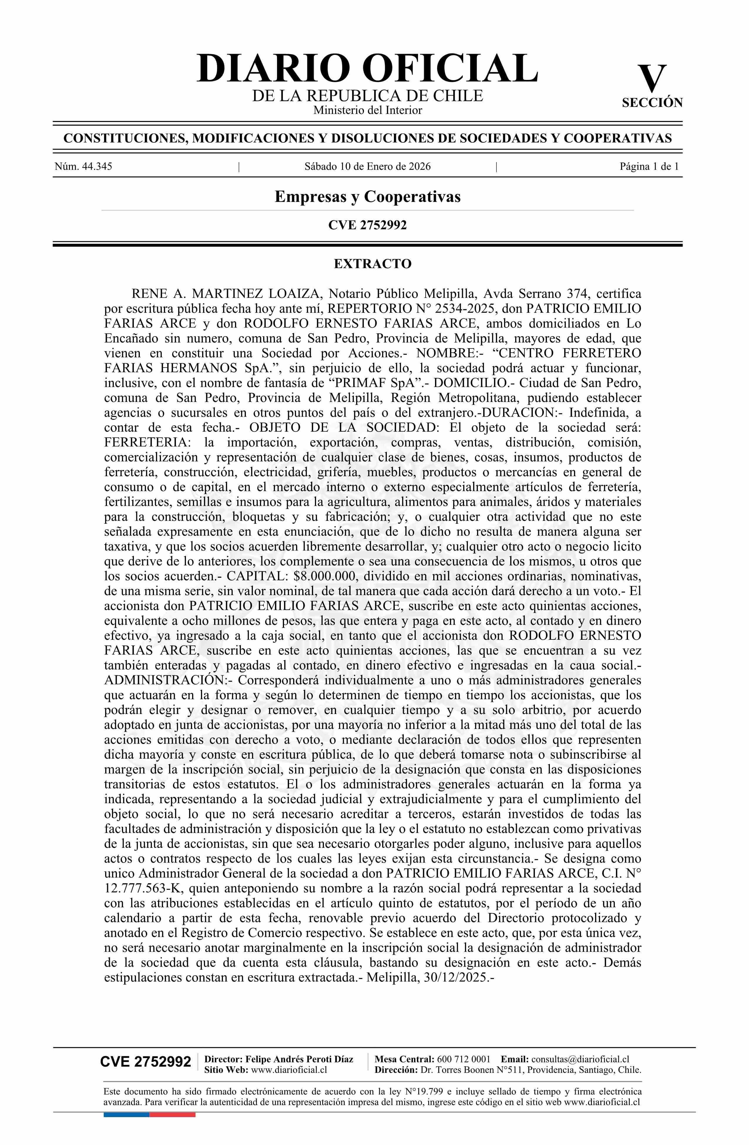 CENTRO FERRETERO FARIAS HERMANOS SpA