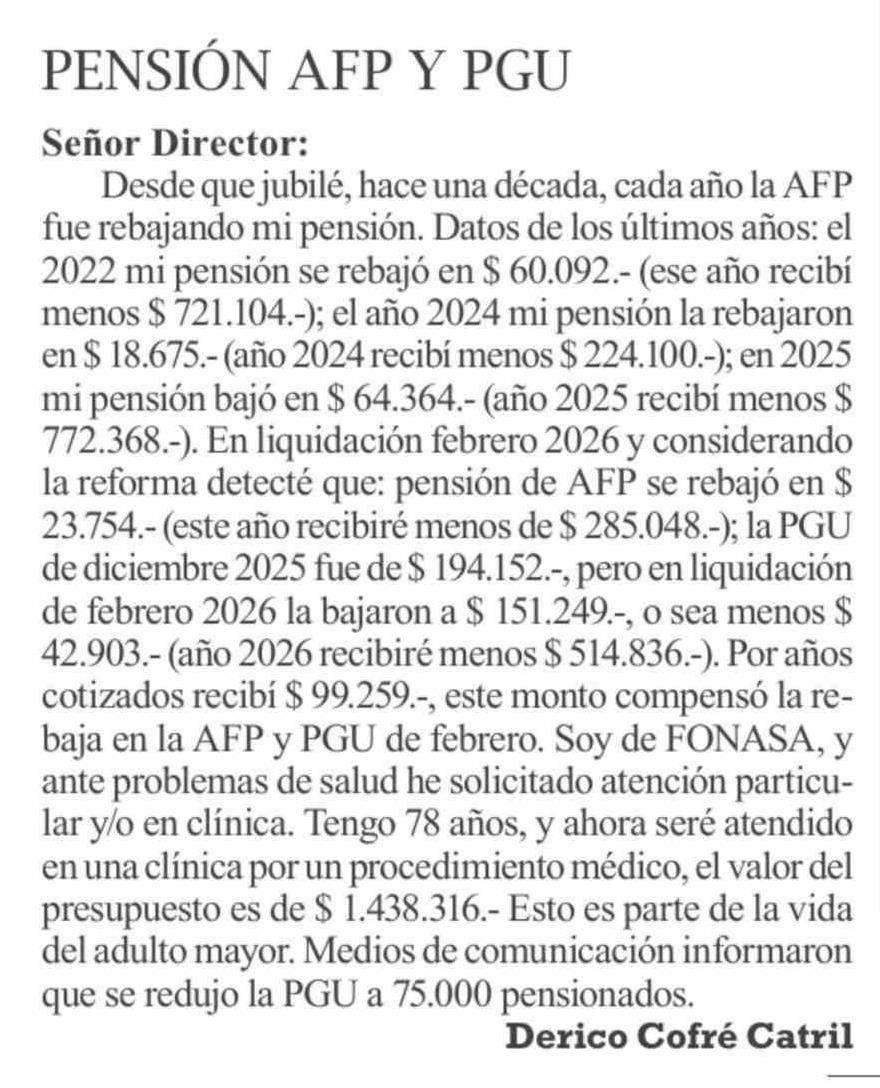Cartas: PENSIÓN AFP Y PGU